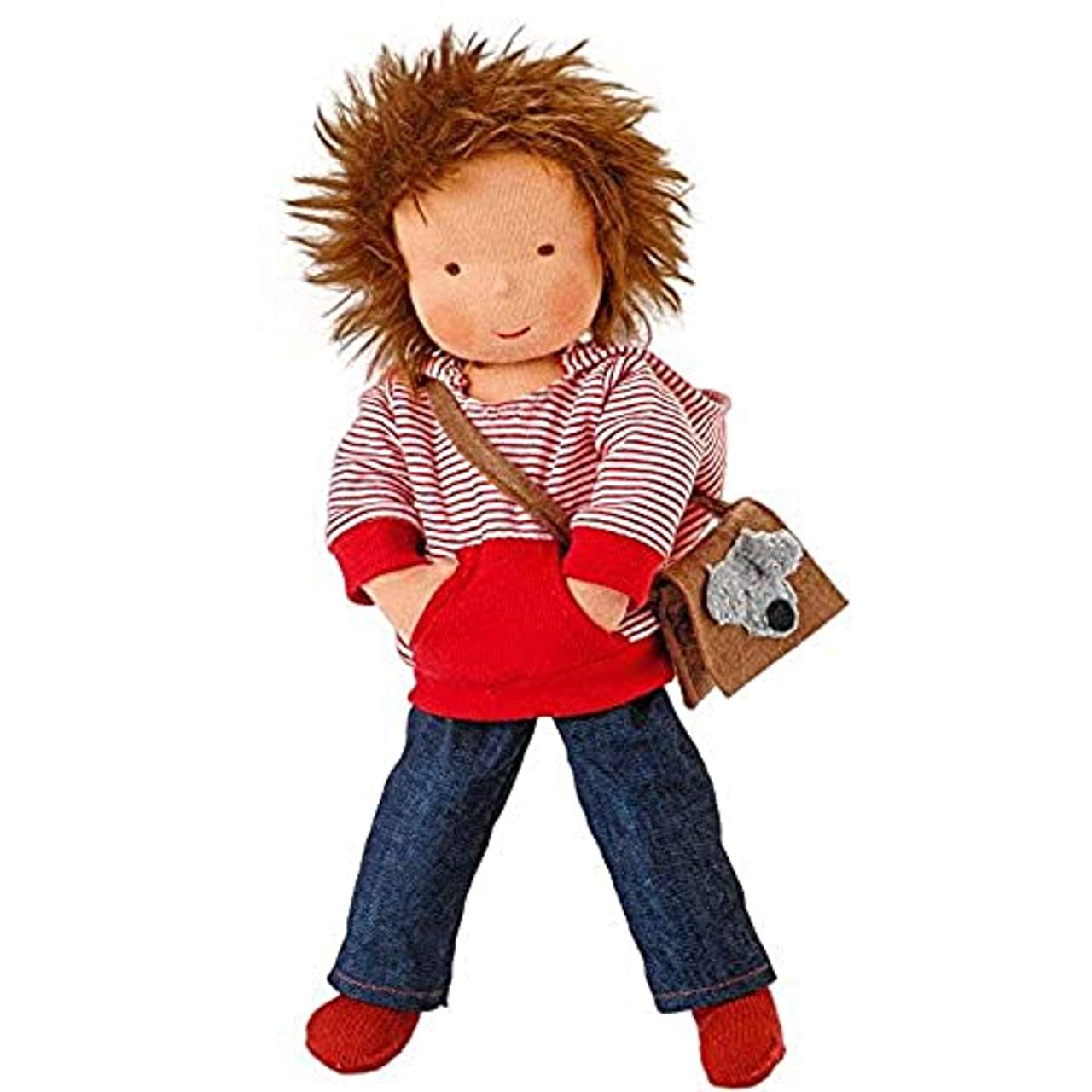 Käthe Kruse 38028 Waldorfpuppe Benni ist eine 38 cm große, handgefertigte Stoffpuppe im Sinne der Waldorfphilosophie. Der Körper der Puppe ist mit natürlicher Schafwolle gefüllt und sie hat Mohairplüschhaare. Sie wird mit Kleidung (Kapuzenpulli, Jeans, Schuhe, Umhängetasche) geliefert. Sie ist für Kinder ab 36 Monaten geeignet und wird in Europa aus Baumwolle aus kontrolliert biologischem Anbau hergestellt. Die Gesichter dieser Puppe sind einfach gehalten, um die Fantasie anzuregen.