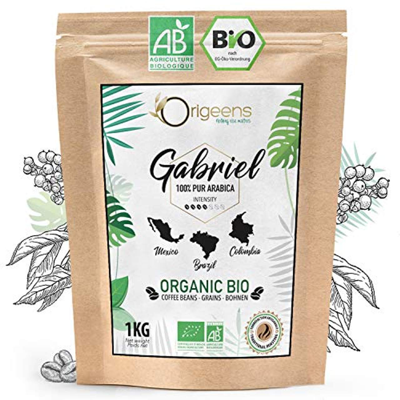 BIO Kaffeebohnen Biologische Arabica Kaffee Ganze BohnenGABRIEL ist eine geschmackvolle und elegante Mischung von Kolumbianischen, Mexikanischen und Brasilianischen Kaffees mit Geschmacksnoten von Trockenfrüchten und Haselnüssen Kaffee, ausgeglichen und ideal für alle Arten von Kaffeemaschinen.