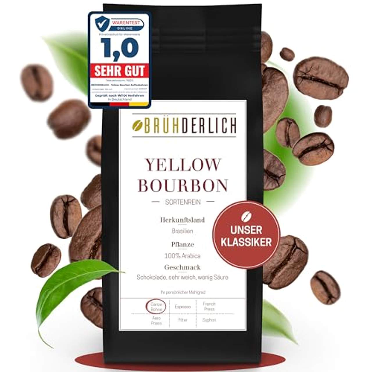 Tauche ein in den reichen Geschmack von Brühderlich Premium Kaffeebohnen Arabica Yellow Bourbon