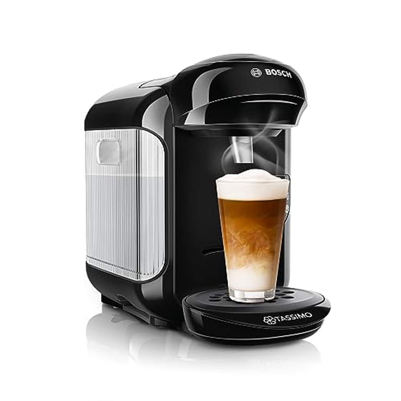 Bosch Tassimo Vivy 2 TAS1402So schnell. So vielfältig. So lecker! Perfekt für Sie zubereitet mit INTELLIBREW Dank INTELLIBREW, der patentierten Barcode-Technologie wird jedes Getränk immer perfekt zubereitet. Die Maschine liest den Barcode auf jeder einzelnen T DISC und erhält die nötigen Informationen für die richtige Wassermenge, Temperatur und Brühzeit. Ihr Lieblingsgetränk - immer perfekt! Nachfüllen leicht gemacht Der praktischeWassertank ist kinderleicht herausnehmbar und lässt sich direkt am Wasserhahn befüllen. Er fasst insgesamt 0,8 Liter. In diese TASSIMO passen alle Ihre Tassen und Becher. Das Tassenpodest ist ganz einfach höhenverstellbar und auch ganz herausnehmbar. So können alle Tassen, Gläser, Becher und sogar Thermobecher verwendet werden - Ihr LIeblingsgetränk in Ihrer Lieblingstasse! Einfaches Reinigen und Entkalken. Mit dem Kauf Ihrer Tassimo erhalten Sie die so genannte T DISC. Mit ihr können Sie Ihre Maschine ganz einfach entweder das automatische Reinigungs- oder das Entkalkungsprogramm starten. Sehr praktisch und ohne viel Aufwand! Nur ein Knopfdruck für Ihr Lieblingsgetränk. Das Leben kann so einfach sein!Ihre Tassimo Maschine erledigt die Getränkezubereitung nämlich ganz automatisch. Einfach die T DISC einlegen und den Knopf drücken. Genießen Sie Ihr Lieblingsgetränk, genießen Sie die Zeit mit Ihren Lieben, genießen Sie das Leben! So schnell. So vielfältig. So lecker! Wozu erst Knöpfe drücken, wenn es noch schneller geht?Dank SmartStart genügt das direkte Drücken der Frontfläche duch die Tasse gleich beim Reinstellen und schon beginnt der Brühvorgang. Wer möchte, kann natürlich immer noch wie gewohnt die Tasse ins Gerät stellen und extra den Startknopf drücken.Der Standby-Modus hilft beim Stromsparen. Das Gerät schaltet sich automatisch nach jedem Brühvorgang in den Stand-by-Modus, wenn es nicht mehr verwendet wird. So können Sie richtig viel Energie sparen, ohne dass Sie zusätzlich etwas tun oder an etwas denken müssen!Technische Daten Große Getränkevielfalt Perfekte Getränkequalität dank INTELLIBREW: Dank der patentierten Barcode-Technologie wird jedes Getränk mit der richtigen Wassermenge, Temperatur und Brühzeit perfekt zubereitet. Das TASSIMO-Gerät liest den jeweiligen Barcode und brüht so das perfekte Getränk.Genau richtig dosierte Kapsel: Jede T Disc enthält frische-versiegelte Zutaten von hoher Qualität Manuelle Getränkestärke-Anpassung: Für ein milderes oder stärkeres Getränk Keine Geschmacksübertragung zwischen verschiedenen Getränken: Automatischer Dampfstoß zur Reinigung nach jeder Getränkezubereitung Einfachste Getränkezubereitung: Vollautomatische Getränkezubereitung mit nur einem Knopf Keine Aufheizdauer nach dem Einschalten:Sofortige Zubereitung des ersten Getränks Intuitives LED-Bedienfeld: LEDs informieren über den jeweiligen Gerätezustand und zeigen an, wenn Nachfüllen von Wasser oder Entkalken notwendig ist. Einfache Reinigung: Automatisches Reinigungs- und Entkalkungsprogramm, spülmaschinengeeignete Einzelteile Geeignet für fast alle Tassen:Höhenverstellbares und herausnehmbares Tassenpodest Leicht zugänglicher und einfach zu befüllender Wassertank: Abnehmbarer Wassertank mit 0.7 Litern Fassungsvermögen, von vorne einsehbar Besonders platzsparend: kompakte Gerätemaße Innovatives Heizsystem: Die benötigte Wassermenge wird nur bei Bedarf aufgeheizt. Geringer Energieverbrauch:komfortable Selbstabschaltung nach dem Brühvorgang Abmessungen: 251 mm x 169 mm x 310 mm Gewicht inkl. Verpackung (kg): 2.6 kg Lieferumfang Bosch TAS1402 Tassimo VIVY 2 Kaffeekapselautomat Real-Black