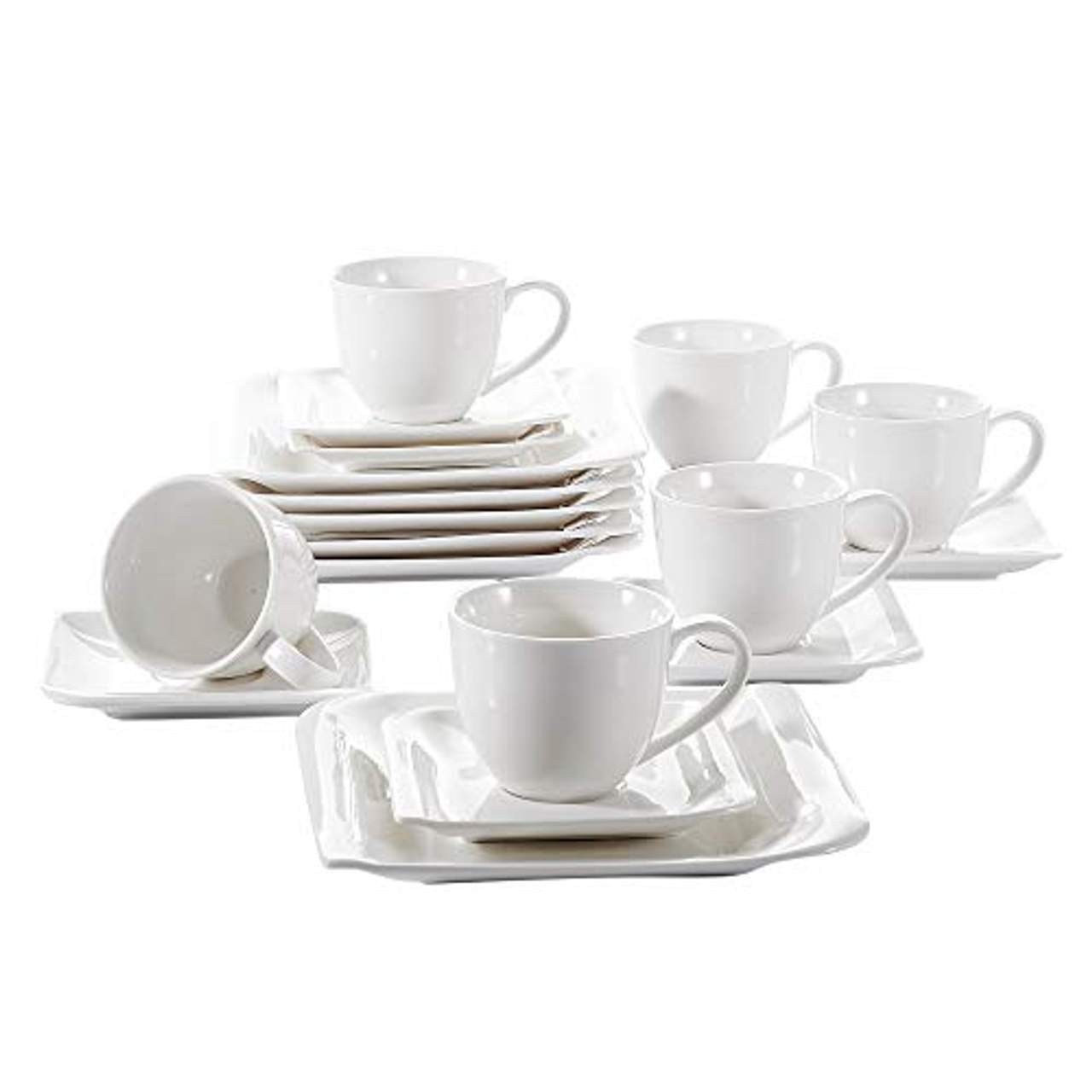 Das vancasso Cloris Porzellan Kaffeeservice Set besteht aus 6 Kaffeetassen, 6 Untertassen und 6 Desserttellern. Es bietet alles, was du für einen gelungenen Kaffeegenuss brauchst.