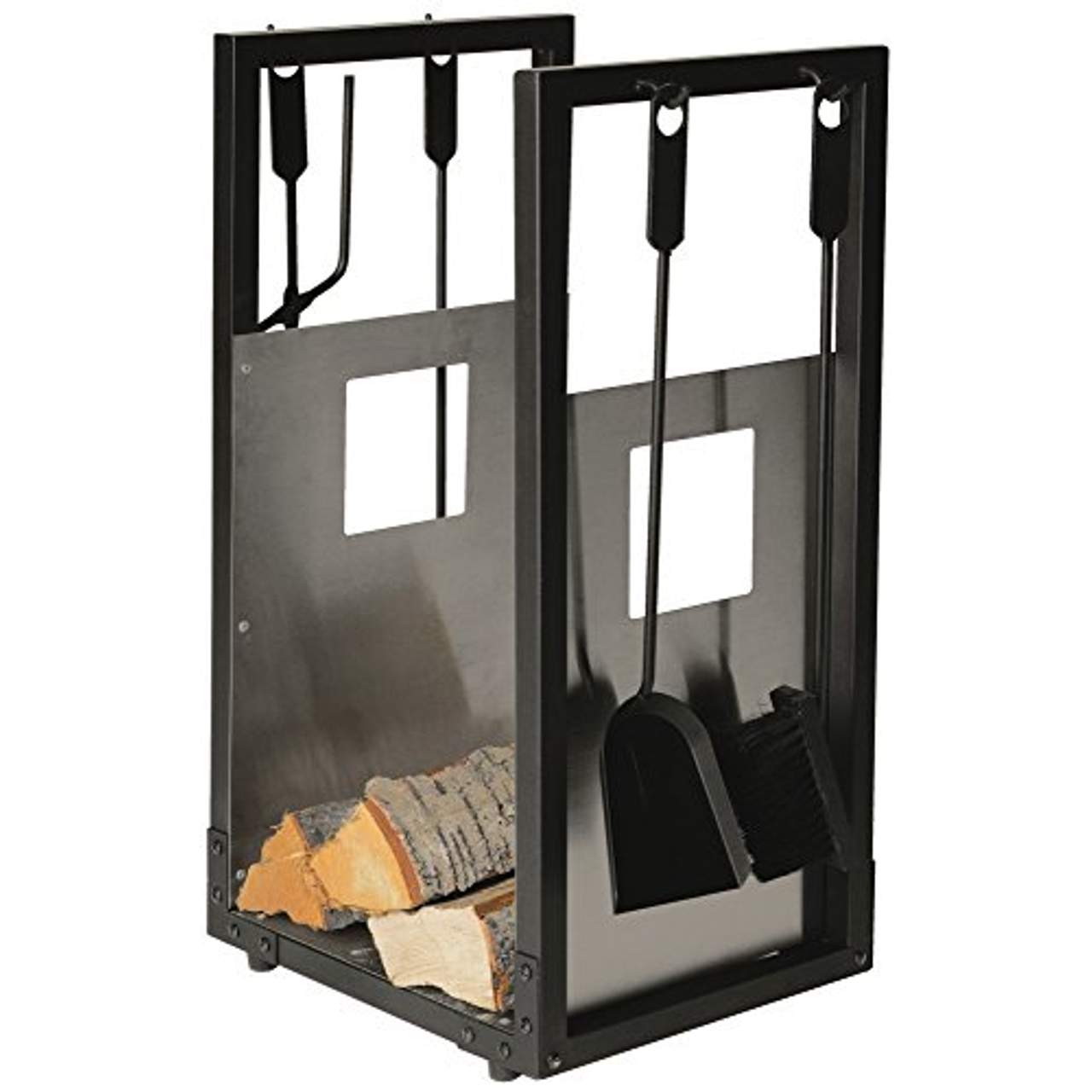 - Alles in einem: Dieses Produkt wird mit allen notwendigen Werkzeugen für Ihren Kaminbedarf geliefert - Schaufel, Besen, Zange und Schürhaken - die alle an vier Haken oben am Holzkorb befestigt sind, um den Zugang zu erleichtern.