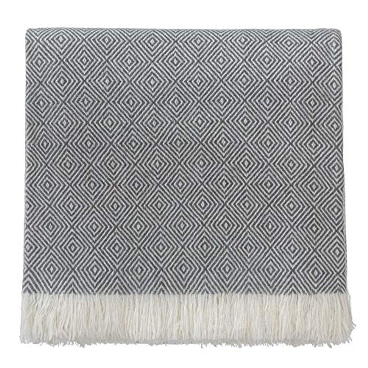 - Zeitloses Design: Die Decke hat ein klassisches Twill-Gewebe mit kleinen Rauten und dekorativen Fransen, die ihr einen zeitlosen Look verleihen, der nie aus der Mode kommen wird. Dank dieses Designs lässt sich die Decke in jede Inneneinrichtung integrieren und fügt sich nahtlos in das bestehende Dekor ein.