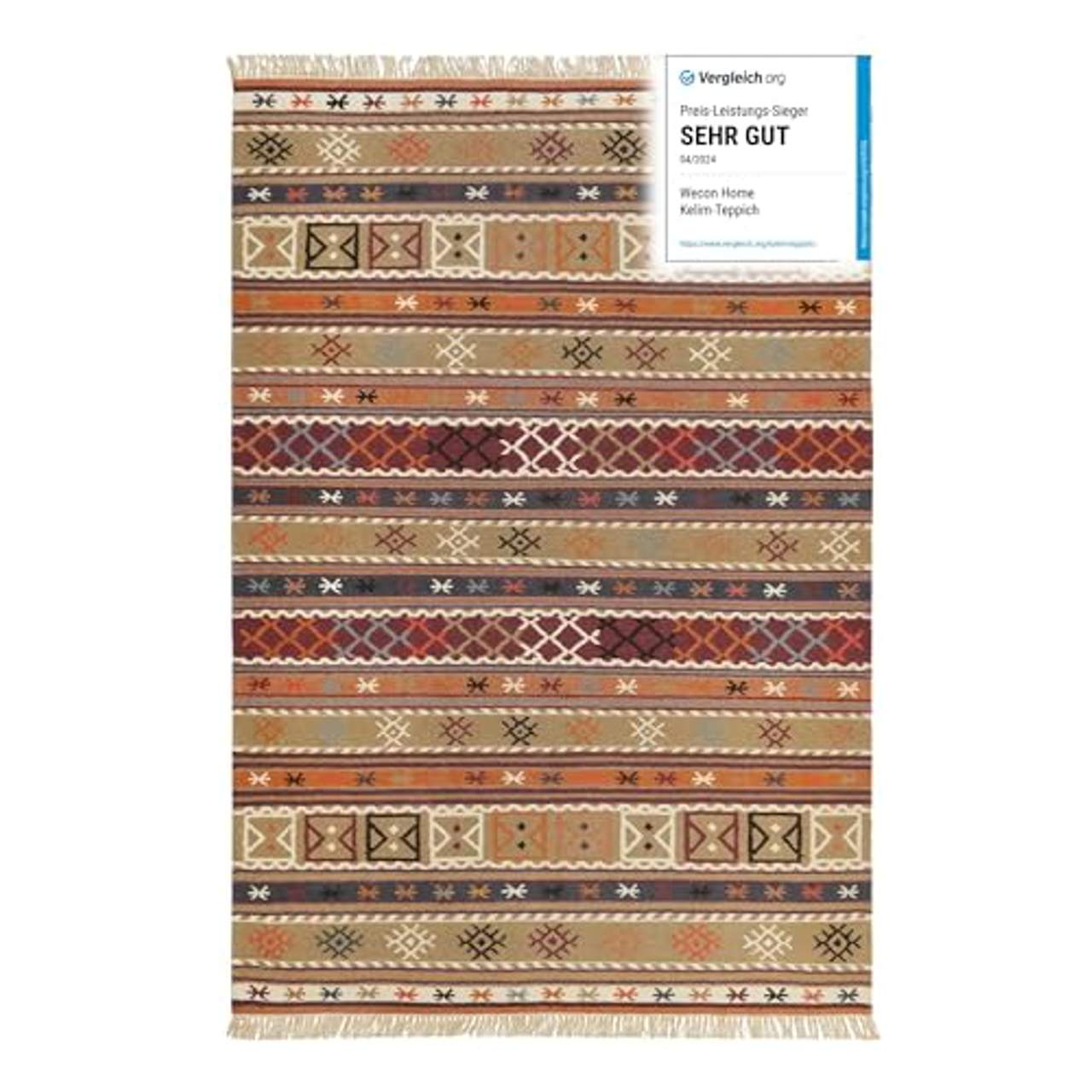 Der Kelim Teppich aus Bester Wolle wird von Wecon Home hergestellt, einer renommierten Marke, die für ihr Engagement für Qualität und Handwerkskunst bekannt ist. Ihr Engagement für die Herstellung hochwertiger Produkte stellt sicher, dass du eine lohnende Investition in deine Wohnungseinrichtung tätigst.