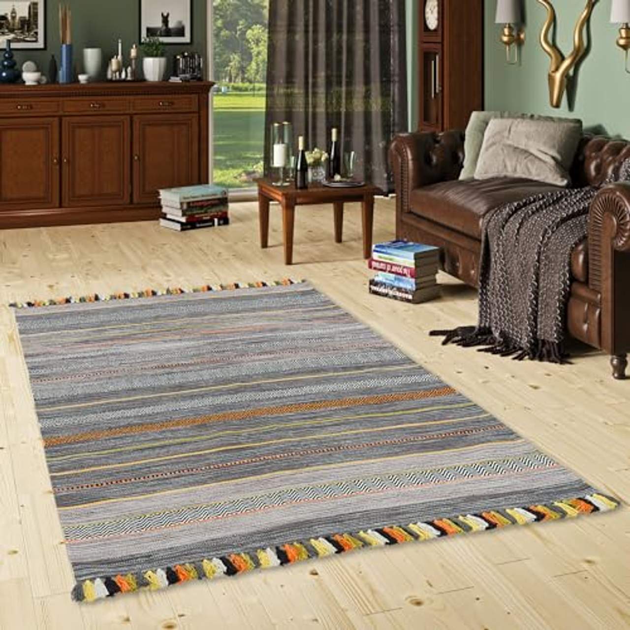 Der "Natur Teppich Bauwolle Kelim Kalleen Anthrazit in 6 Größen" ist in sechs verschiedenen Größen erhältlich. Diese Vielfalt ermöglicht es dir, für jeden Raum die perfekte Größe zu wählen, egal ob es sich um eine gemütliche Ecke oder einen größeren Bereich handelt.