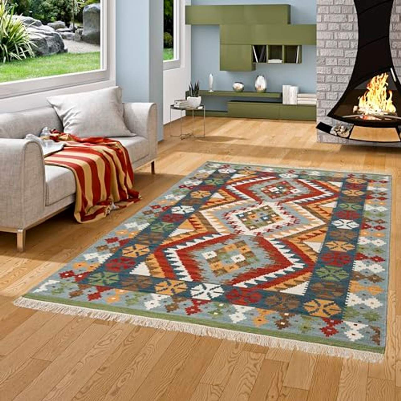 Natur Teppich Kelim Sumak Bunt Bordüre Trend in 7 Größen Vorteile