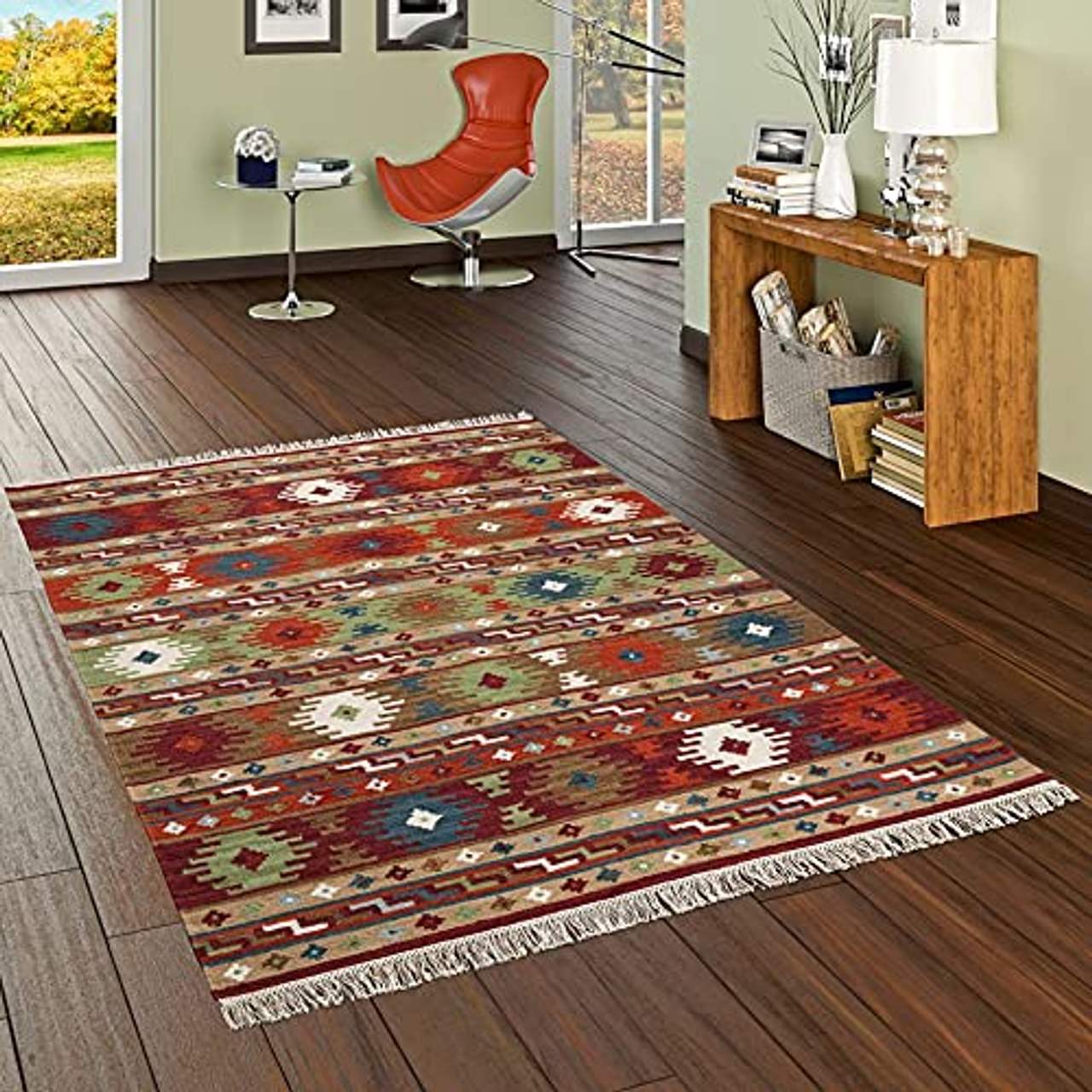 - Langlebige Qualität: Der Teppich Kelim Sumak von Theko besteht zu 80 % aus Schurwolle und zu 20 % aus Baumwolle, was ihn zu einem robusten, langlebigen Produkt macht, das auch regelmäßiger Abnutzung standhält. Das handgewebte Herstellungsverfahren gewährleistet, dass der Teppich von höchster Qualität ist und den höchsten Standards entspricht.