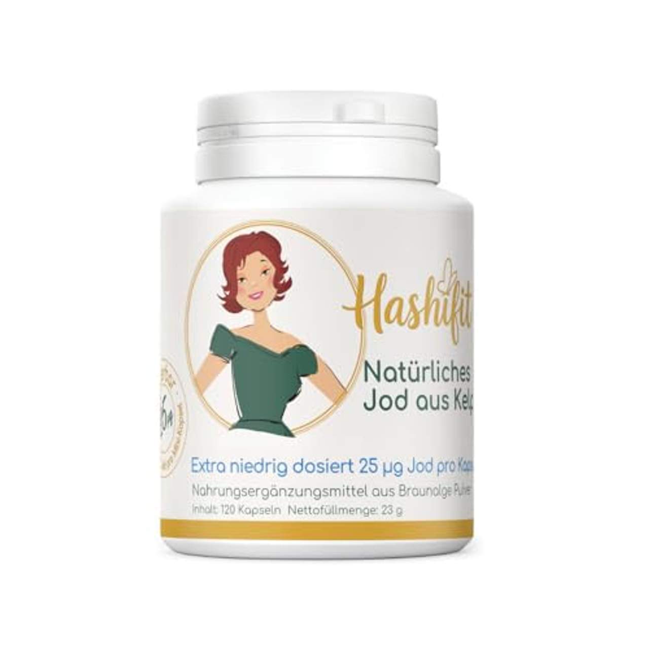 Bei diesem Produkt handelt es sich um „25µg Natürliches Jod aus Kelp“, ein Markenprodukt von Hashifit. Es hat einen niedrigen Jodgehalt von 25 µg und ist daher für Personen geeignet, die es langsam einnehmen müssen oder empfindliche Fälle wie die Hashimoto-Hypothyreose haben. Das Produkt wird in 120 Kapseln ohne unerwünschte Zusatz- und Hilfsstoffe geliefert und kann zur normalen Produktion von Schilddrüsenhormonen, zum Energiestoffwechsel und zum Nervensystem beitragen.
