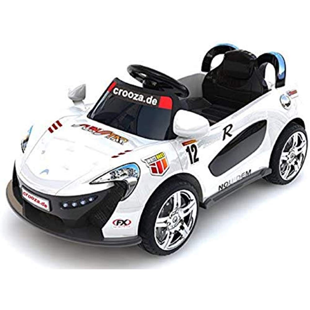crooza Roadster mit 2x Motoren mp3 LED Elektro KinderautoSämtliche Lichter am Fahrzeug funktionieren.Fahrzeug wird ohne aufkleber geliefert. Sticker Set im Lieferumfang, wer will kann es mit dem Kind Zusammen aufkleben und so die Vorfreude steigern :-)