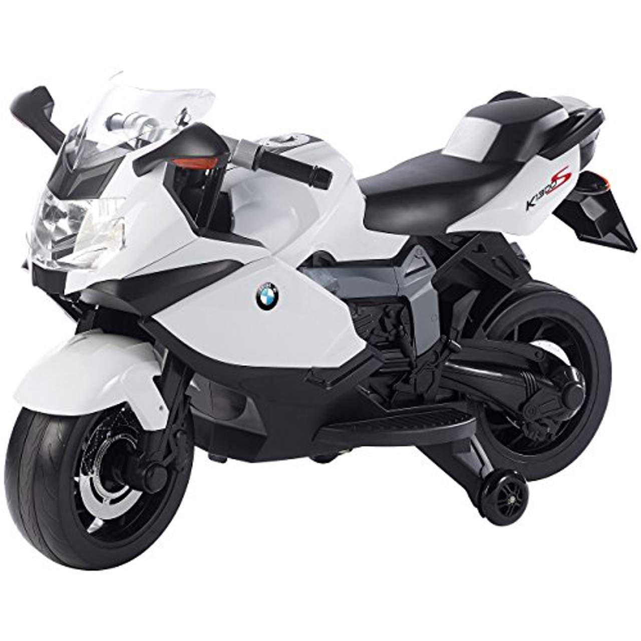 .Eines der besten Motorräder, die BMW je gebaut hat: Mit diesem sportlichen Nachbau der BMW K1300 S als Elektro-Motorrad haben jetzt auch Ihre Kleinen mächtig Spaß damit! Einfach Zündschlüssel umdrehen, Gaspedal drücken und schon machen Ihre Kinder ihre erste spannende Biker-Erfahrung.Ein kräftiger Anfahrtsound beim Start des schnittigen Kindermotorrads sagt Ihnen, dass es gleich wild wird. Mit 3 Gängen heizen die kleinen Biker durch die Gegend. Auch rückwärts Fahren ist ganz einfach! Die Höchstgeschwindigkeit von 4,5 km/h sorgt dafür, dass Ihnen die Kids nicht davon fahren.Tolle Sounds runden das Fahrerlebnis ab: Auf Knopfdruck spielt die BMW K1300 S alles, was das Biker-Herz begehrt. „Wrumm-wrumm“ - beim Hochschalten in den nächsten Gang gibt es nichts besseres, als den Beschleunigungs-Sound zu aktivieren. Und mit der Hupe warnen die Kleinen ihre Eltern, dass sie jetzt kommen!Natürlich darf auch Musik nicht fehlen: Gleich 2 Knöpfe spielen je 3 Lieder in einer Schleife ab. Die Scheinwerfer blinken dazu lässig im Rhythmus der Musik. Zudem sorgen 2 hilfreiche Stützräder für optimale Sicherheit beim Fahren.Der Statt-Preis von EUR 429,90 entspricht dem ehem. empf. VK des Lieferanten.