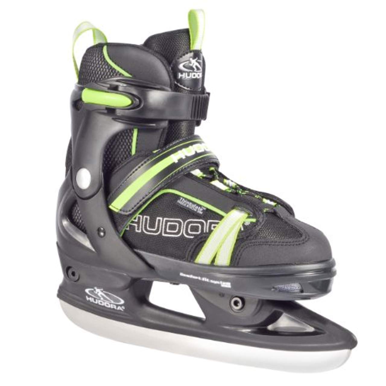 HUDORA rGoSchöner Semisoft-Schlittschuh für Kinder, der über vier Größen mitwächst! Der Iceskate rGO von HUDORA überzeugt durch hochwertige Ausstattung und komfortables Design. Schlittschuh mit Obermaterial aus wasserfestem Kunstleder und High-Density-Mesh. Robuste Schale und Manschette gefertigt aus kältehartem und nylonverstärktem Thermo-PE.Gehärtete und gebrauchsfertig vorgeschliffene Karbonstahlkufe (53 HRC). Die Zehenkappe aus stoßfestem Nylon dient als Aufprallschutz. Mit Power-Strap für sicheren Halt im Schuh. Kinderleichtes Anziehen durch Schnellschnürsystem mit Klettverschluss.