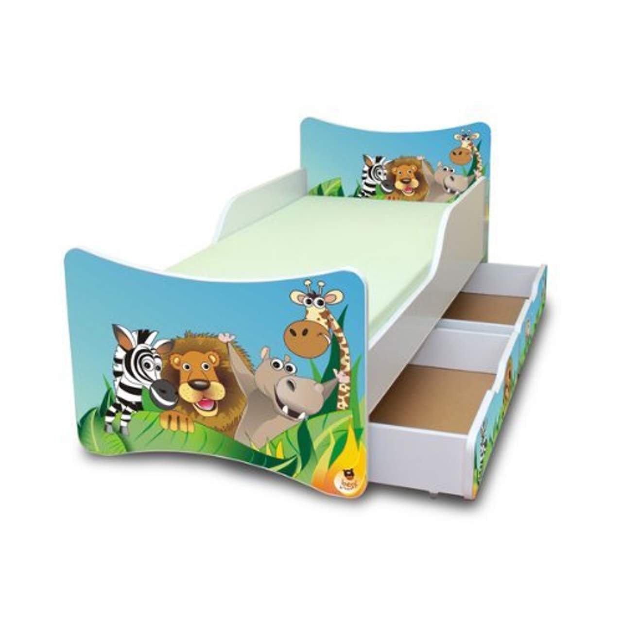 Best For Kids Kinderbett mit SchaummatratzeKinderbett mit 10 cm Matratze und Schublade (wenn in der Überschrift angegeben), verschiedene Designs und GrößenBEST FOR KIDS ist eine deutsche Firma, die 2002 gegründet wurde und sich durch Vermarktung und Herstellung von Baby- und Kinderartikeln auf dem europäischen Markt bewährt. Die Produkte zeichnen sich durch besonders hohe Qualität, Sicherheit und Beständigkeit aus. Wir sind u.a. ein Hersteller von Kinderbetten und unsere Produkte genießen große Popularität im In- und Ausland. Bei der Herstellung verwenden wir nur hochqualitative Materialien europäischer Herkunft. Alle unsere Produkte werden mit höchster Genauigkeit verarbeitet, was unsere Bewertungen wiederspiegeln.Dieses Bett wurde aus hochwertigen Spanplatten hergestellt und verfügt über bunte Aufdrücke auf den Fronten. Der Aufdruck wurde aus ökologischen Farben angefertigt und zusätzlich laminiert, deshalb verblassen die Farben nicht und können nicht weggewischt werden. Die Bettkanten besitzen einen speziellen Überzug und schützen ihr Kind somit vor Verletzungen. Die erhöhten Seiten verhindern, dass Ihr Liebling während des Schlafs aus dem Bett fällt. Die besondere Herstellung und hochqualitative Materialien sorgen dafür, dass alle von uns angebotenen Bettchen sehr stabil und robust sind. Der Lattenrost besteht aus 2 cm dicken Querstäben aus Holz und hält max. 150 kg Körpergewicht aus. Ein Elternteil kann problemlos auf dem Bett sitzen oder sogar auch mit dem Kind liegen. Betten mit einer Länge von 180 cm sind zusätzlich verstärkt. Matratze: Hochqualitative, weiße Schaumstoffmatratze 10 cm, die ideal an das Bett angepasst ist. Der Überzug hat ein Reißverschluss und kann auch abgenommen und gewaschen werden.Wandsticker-Set passend zum Kinderbett ermöglicht eine Verschönerung des Kinderzimmers. Aufkleber können auf die Wand oder Möbel aufgeklebt werden. Diese Wandsticker-Set können Sie separat in Unseren Shop einkaufen. ****Lieferzeit 6 - 10 Werktage****