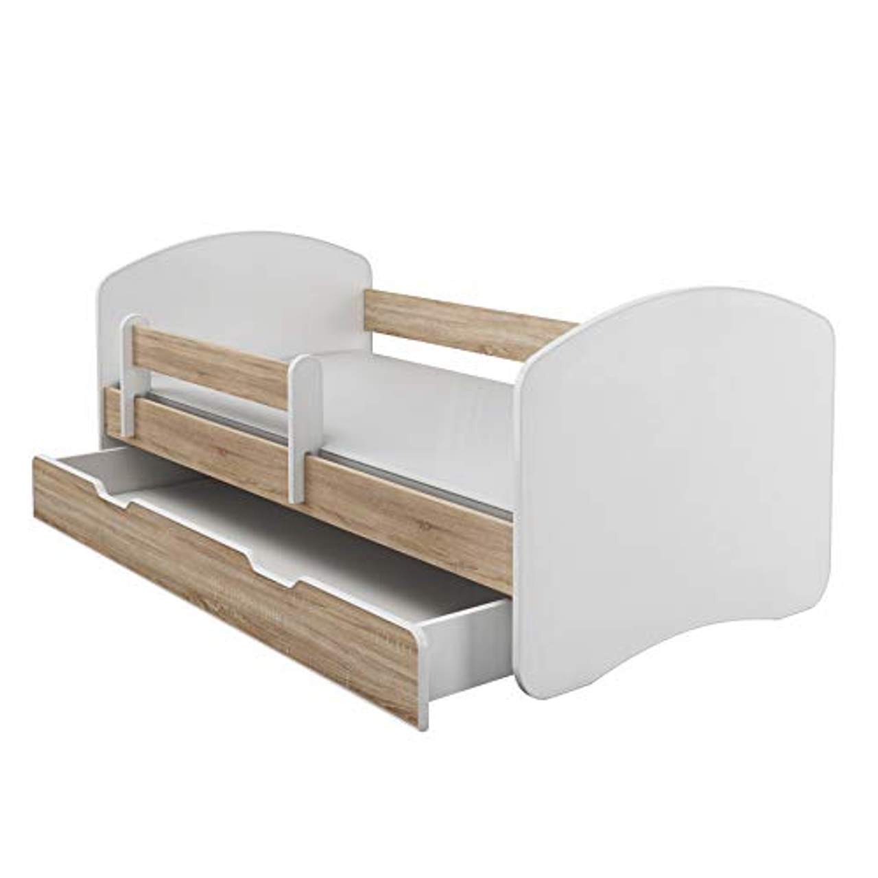 - Sicherheit: Die speziell geformten Bettseiten verhindern, dass Ihr Kind während des Schlafs aus dem Bett fällt. So haben Sie die Sorgenfreiheit, dass Ihr Kind sicher im Kinderbett schläft.