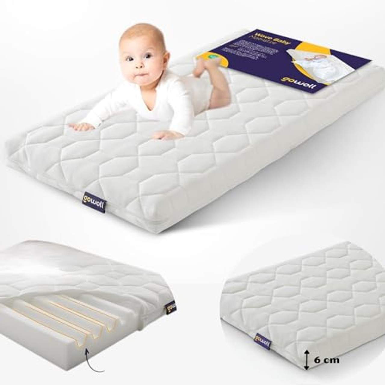 gowoll Baby Matratze 60x120 cm aus KaltschaumGowoll Baby Matratze Premium Kaltschaummatratze mit Doppelseitigem Design und Verbesserten Sicherheitsmerkmalen Verbessern Sie die Schlafqualität Ihres Babys mit der Gowoll Baby Matratze, einer erstklassigen Kaltschaummatratze in der Größe, speziell für Säuglinge und Kleinkinder entwickelt. Mit ihrer doppelseitigen Funktionalität bietet diese Matratze individuelle Unterstützung und Komfort für Babys im Alter von 0–3 Monaten auf der einen Seite und 0–6 Monaten auf der anderen. Sicherheit steht an erster Stelle, und unsere Matratze verfügt über hochwertige CNC-geschnittene Schaumstoffkanäle, die nicht nur für eine hervorragende Luftzirkulation sorgen, sondern auch das Risiko der Erstickungsgefahr minimieren. Die präzise gestalteten Kanäle ermöglichen eine effektive Belüftung, was besonders wichtig ist, um die Atemwege Ihres Babys frei zu halten, selbst wenn es während des Schlafs spucken sollte.Die Bequemlichkeit setzt sich mit der leicht zu reinigenden Funktion unserer Matratze fort. Der abnehmbare Bezug ist bei 60°C waschbar und sorgt für eine hygienische Umgebung für Ihr Baby. Das praktische Reißverschluss-Design ermöglicht ein müheloses Abnehmen und Anbringen für einen bequemen Reinigungsprozess.Unsere Babymatratze ist allergikerfreundlich und hautfreundlich und damit die ideale Wahl für diejenigen mit empfindlicher Haut oder Allergien. Der weiche Bezug bietet ein angenehmes Schlafklima und sorgt für den maximalen Komfort Ihres Babys. Investieren Sie mit Vertrauen in die Schlafqualität Ihres Kindes.Diese hochwertige Kaltschaummatratze für Babys und Kleinkinder ist nicht nur langlebig, sondern bietet auch lang anhaltenden Komfort. Von der Geburt bis zum Kleinkindalter können Sie beruhigt sein, dass Sie einen sicheren, unterstützenden und gemütlichen Schlafplatz für Ihr Kleines geschaffen haben.LUFTKANÄLE FÜR DIE SICHERHEIT IHRES BABYS: Unsere Matratze wurde speziell entwickelt, um ein sicheres Schlafumfeld für Ihr Baby zu schaffen. Hochwertige, CNC-geschnittene Schaumstoffkanäle sorgen für hervorragende Luftzirkulation und minimieren die Erstickungsgefahr. Die präzise gestalteten Kanäle ermöglichen eine effektive Belüftung, was besonders wichtig ist, um die Atemwege freizuhalten, selbst wenn Ihr Baby nach dem Stillen oder während des Schlafs spucken sollte.DOPPELSEITIGE PRODUKTAUSSTATTUNG:Unser Bett ist beidseitig nutzbar, eine Seite ist speziell für Babys im Alter von 0–3 Monaten und die andere Seite speziell für Babys im Alter von 0–6 Monaten konzipiert… Sie bietet eine hohe DNS-Struktur und einen speziellen CNC-geschnittenen Schwamm für besten Komfort.LEICHT WASCHBARER BEZUG MIT REIßVERSCHLUSS: Der Bezug ist mühelos bei 60°C waschbar, wodurch eine hygienische Umgebung für Ihr Baby gewährleistet wird.Der praktische Reißverschluss ermöglicht eine einfache Entfernung und Anbringung des Bezugs für eine bequeme Reinigung.FÜR ALLERGIKER GEEIGNET, HAUTFREUNDLICH: Die kinderbett Matratze ist für Allergiker geeignet. Der weiche Bezugsaufbau ist hautfreundlich und bietet ein angenehmes Schlafklima. Damit bieten wir eine ideale Lösung für einen erholsamen Schlaf, besonders für diejenigen mit empfindlicher Haut oder Allergien.LANGLEBIGE QUALITÄT, SORGENFREIE INVESTITION:Unsere hochwertige Kaltschaummatratze für Babys und Kleinkinder ist langlebig und bietet lang anhaltenden Komfort. Mit dieser Investition in die Schlafqualität Ihres Kindes können Sie sich beruhigt darauf verlassen, dass sie von der Geburt bis zum Kleinkindalter einen unterstützenden und gemütlichen Schlafplatz haben.