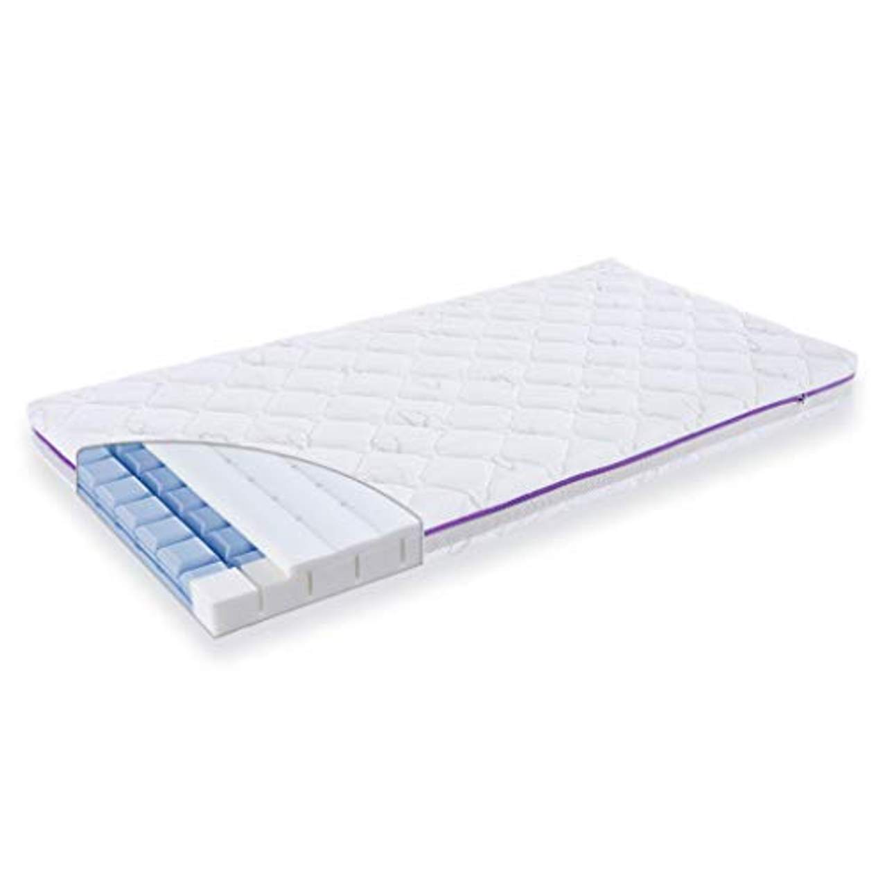 Punktelastische Stütze: Der Matratzenkern besteht aus einem hochflexiblen, freistehenden 3D-Komfort-Polster, das für eine hervorragende Punktelastizität und einen hohen Liegekomfort sorgt. Dadurch wird die Wirbelsäule des Babys entlastet und gleichzeitig gestützt.