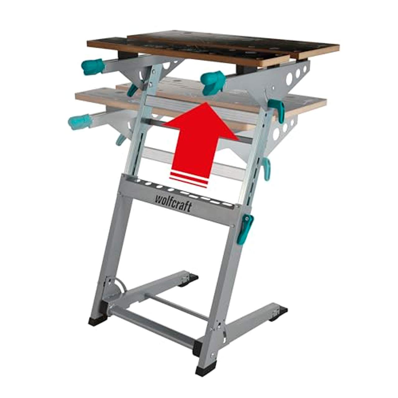 - Vielseitiges Design: Die klappbare Werkbank wolfcraft Master 700 ist so konzipiert, dass die 19 mm starke, ausziehbare MDF-Platte stufenlos von 0 bis 70° geschwenkt werden kann. So lassen sich Kapp- und Gehrungssägen oder Bohrständer sicher darauf befestigen und Werkstücke mit einer Spannweite von bis zu 13 cm zwischen den Holzplatten der Arbeitsfläche sicher fixieren.