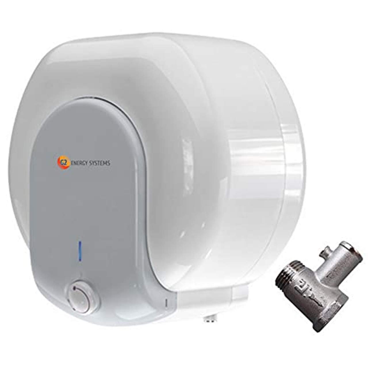 Der „Warmwasserspeicher Boiler Kleinspeicher elektrisch druckfester Übertisch“ ist ein 10 L elektrischer Warmwasserspeicher der Firma G2 Energy Systems. Er hat eine Leistung von 1500 Watt, ist druckfest bis 8 bar und verfügt über ein optisches Display, das Heiz- und Stand-by-Modus anzeigt. Er hat ein superflaches Design mit den Maßen 399 x 377 x 247 mm, was bei der Installation Platz spart.