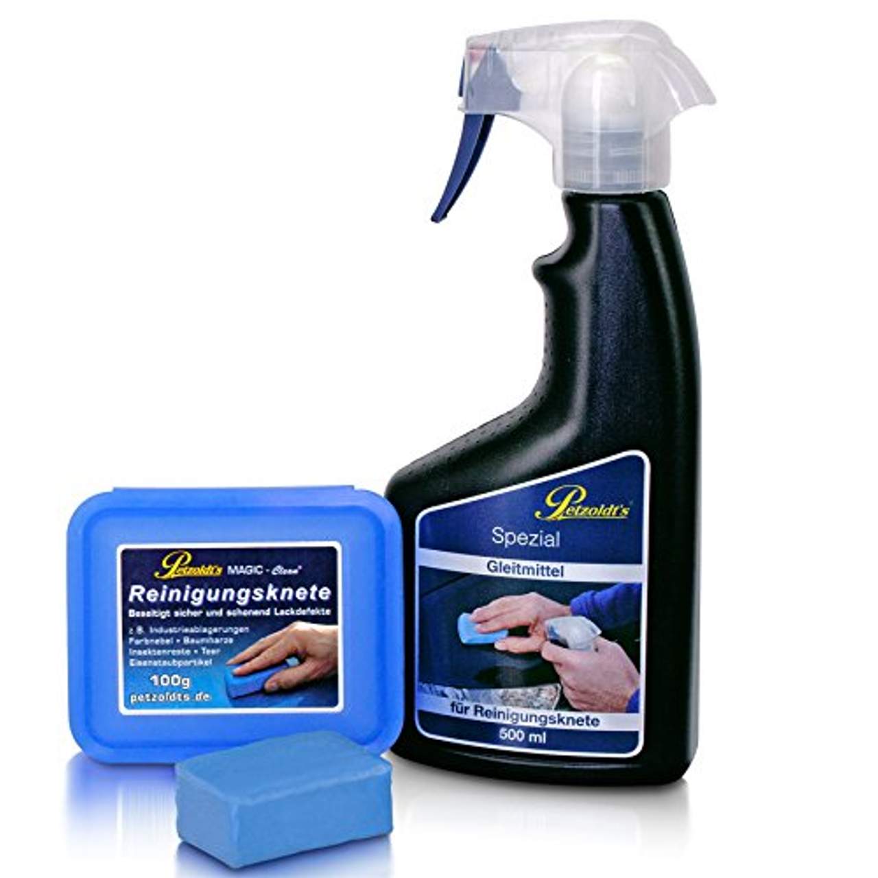 - Schonende Reinigung: Das Petzoldt's Reinigungsknete-Gleitmittel Set dient zur sicheren und schonenden Entfernung von fühlbaren Ablagerungen auf glatten Oberflächen wie Lack, Glas, Metall, Chrom, etc. Diese Reinigungstechnik verhindert Spuren und Hologramme beim Polieren und Pflegen von Lackoberflächen.