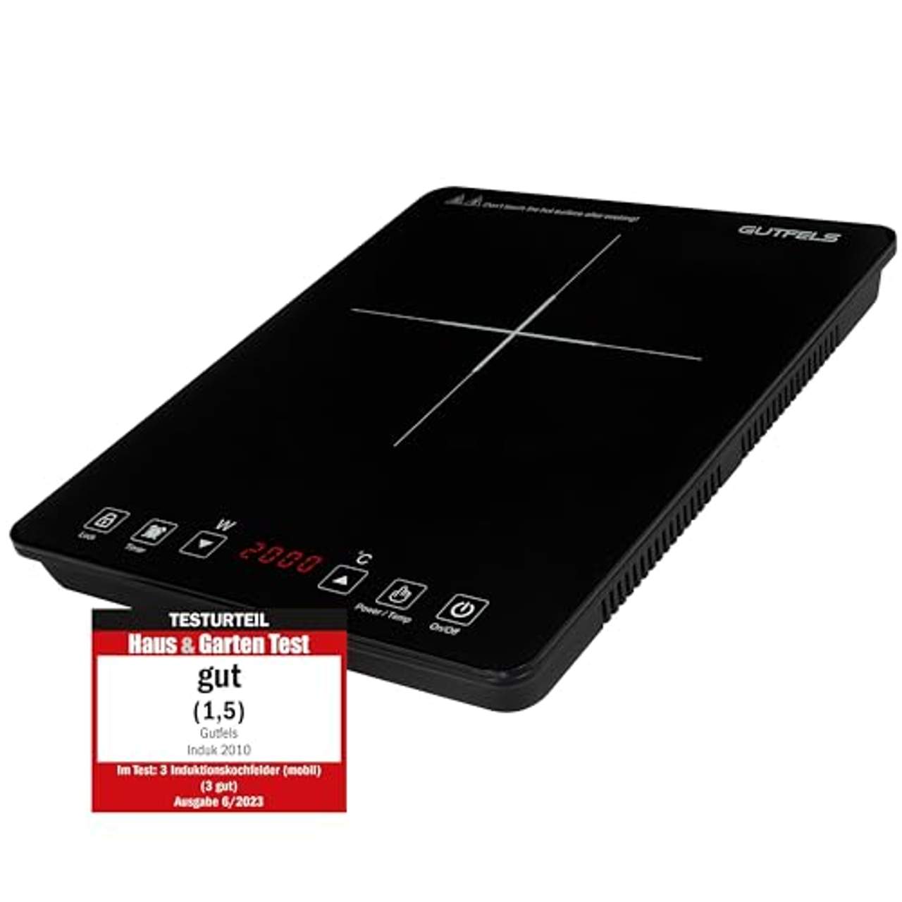 Die Gutfels Induktionskochplatte Induk 2010 sticht in unserem Test besonders durch ihre außergewöhnliche Mischung aus Leistung und Präzision hervor. Sie verfügt über eine robuste 2000-Watt-Leistung und zehn Kochstufen, die den verschiedenen kulinarischen Bedürfnissen gerecht werden. Die automatische Topferkennung erhöht die Sicherheit und Effizienz und sorgt für mehr Komfort und Sorgenfreiheit. Das moderne Design macht ihn noch attraktiver, denn er ist tragbar und vielseitig einsetzbar - egal ob in der heimischen Küche oder bei Abenteuern im Freien. Die Touch-Bedienung vereinfacht die Bedienung und sorgt für Hygiene und leichte Reinigung. Die Kindersicherung unterstreicht den Sicherheitsaspekt und macht es zu einer zuverlässigen Option für Familien. Wir finden, dass dieses Induktionskochfeld aufgrund seiner effizienten Leistung und seiner benutzerfreundlichen Eigenschaften eine gute Wahl für alle ist, die einen persönlichen Kochplattentest durchführen.