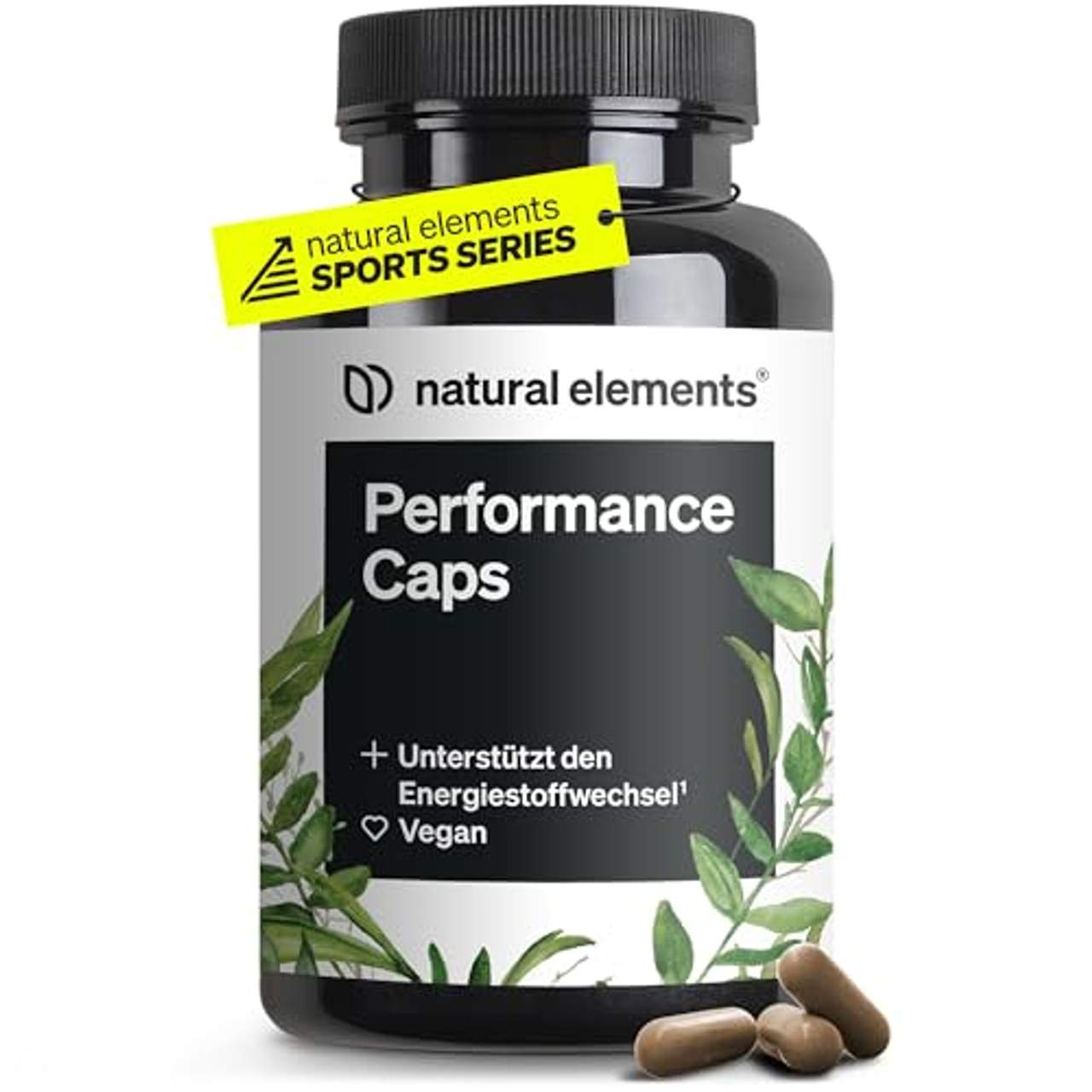 Die "natural elements Performance Caps" bieten langanhaltende Unterstützung, indem sie 150 mg Koffein mit wichtigen B-Vitaminen in jeder Kapsel kombinieren. Das Ergebnis ist ein anhaltender Energieschub ohne den üblichen Absturz, den man von Kaffee oder Energydrinks kennt.
