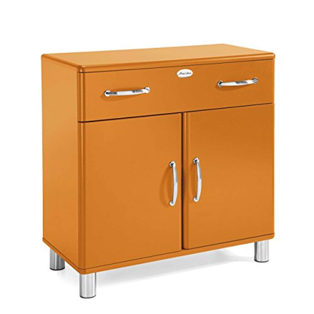 Die Tenzo 5127-017 Malibu Designer Kommode ist eine stilvolle und funktionale Kommode mit zwei Türen, einer Schublade und einem Einlegeboden. Sie ist in einem leuchtenden Orange gehalten und verfügt über Metallgriffe und -füße, die deinem Wohnraum Eleganz verleihen.