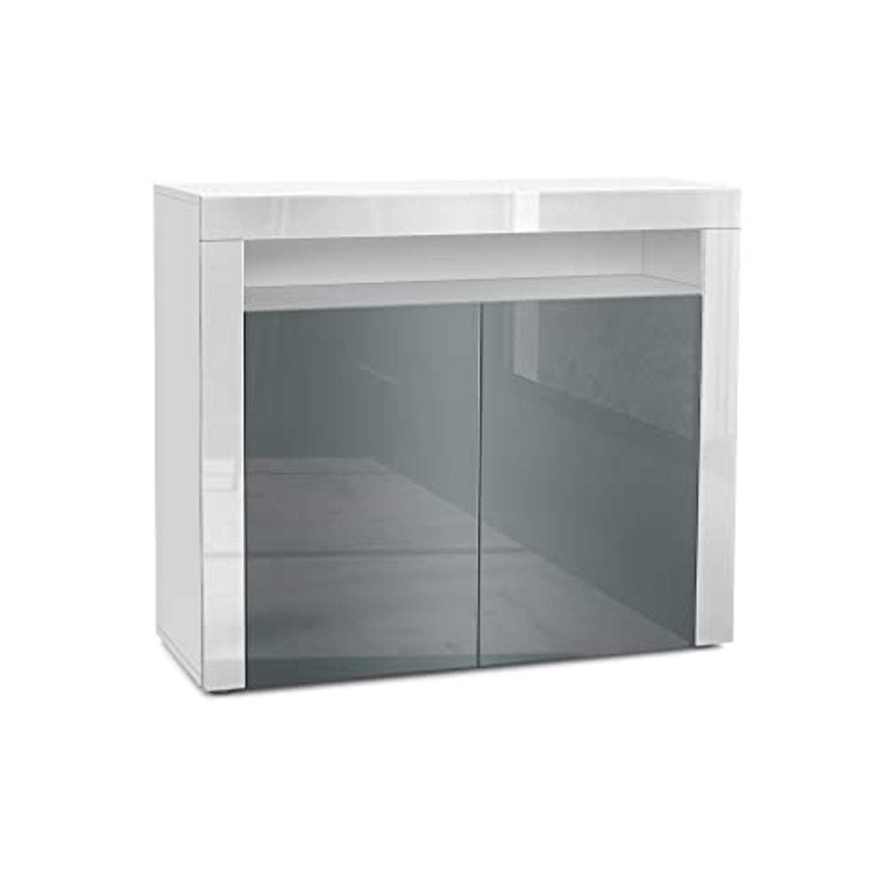 Vladon Kommode Sideboard ValenciaModern und gradlinig präsentiert sich die Kommode Valencia und beweist, dass Stauraum auch ansprechend sein kann.Besonders auffällig ist die offene Ablage, die zum munteren Dekorieren einlädt. Darunter befinden sich 2 Türen mit weitläufigen Innenräumen. 2 flexible Einlegeböden sorgen hier für den notwendigen Überblick. Eine interessante Verblendung zieht sich wie ein Rahmen um die gesamte Kommode. So verschmelzen alle Elemente zu einer Einheit. Um das linientreue Design zu unterstreichen wurde gänzlich auf störende Griffe verzichtet. Die Türen lassen sich ganz bequem über einen leichten Überstand öffnen.Die Kommode hat einen matten, melamin-beschichteten, Korpus in der Trendfarbe Weiß. Die Fronten und Blenden bestehen aus MDF und sind entweder in Hochglanz oder mit naturrealistischer Maserung, jeweils mit abgerundeten Kanten (besonders wichtig für die Sicherheit von Kindern usw.) verfügbar. Die naturrealistischen Oberflächen weisen eine feine Reliefstruktur auf. Das Montagezubehör ist aus Metall und sorgt für eine stabile Montage.Maße der Kommode in cm (BxHxT): 108 x 92 x 40Bitte beachten Sie, dass die abgebildete LED Beleuchtung nicht in dem Angebot enthalten ist. Bitte bestellen Sie diese separat. Sie finden die Beleuchtung wenn Sie folgenden Begriff in die Suchleiste eingeben: LED RGB Unterbaubeleuchtung 1er Set