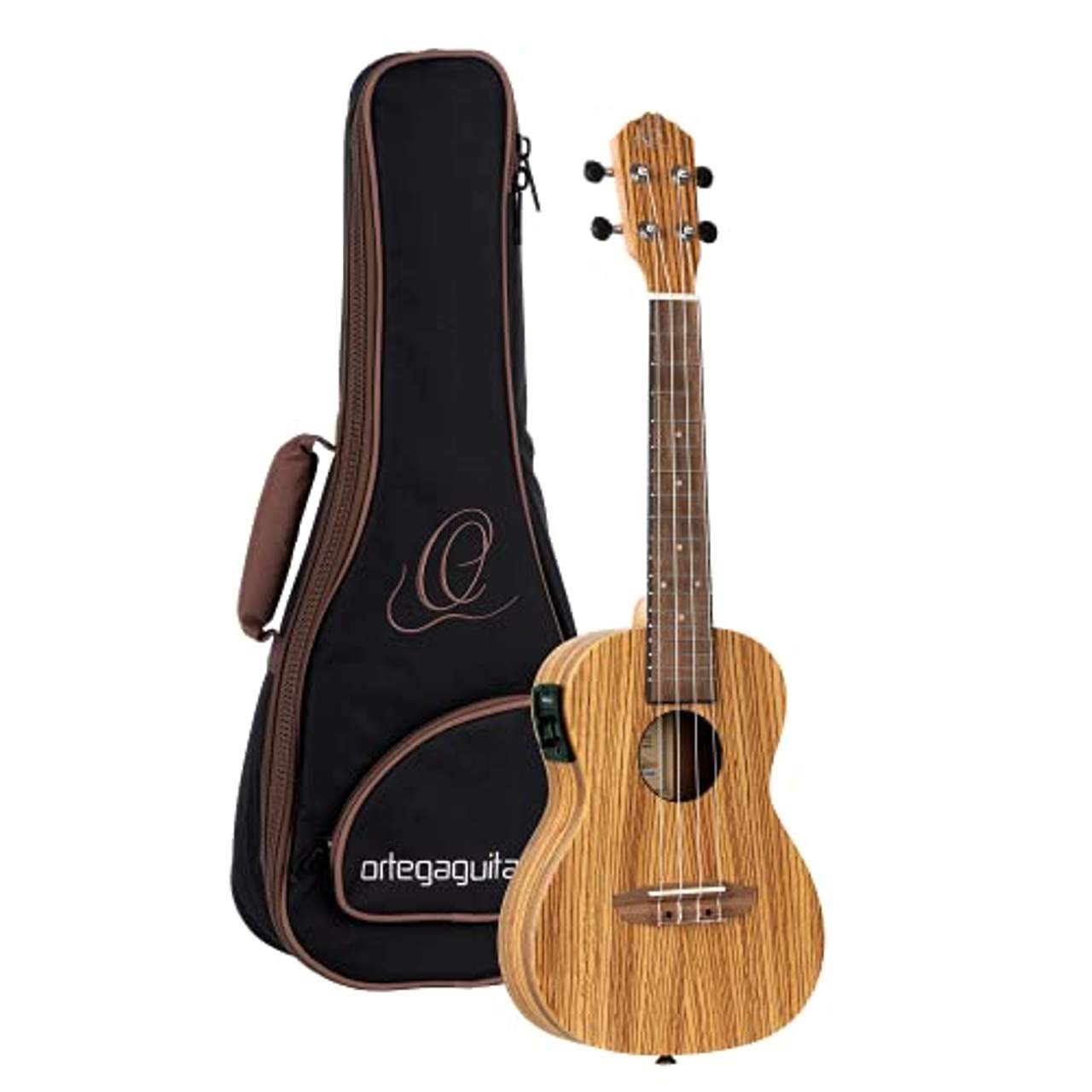 Die Ortega Guitars Konzert Ukulele elektro-akustisch ist eine Konzert-Ukulele, geeignet für Musiker mit kleinen bis mittleren Händen. Sie ist aus Zebrano und Mahagoni gefertigt, was ihr einen angenehm warmen und weichen Klang verleiht. Das Instrument wird mit einem Deluxe-Gigbag, einem Stimmgerät mit LED-Anzeige und einem Ortega MagusUke-Tonabnehmersystem geliefert. Die Ukulele verfügt außerdem über Druckguss-Mechaniken und eine matte Lackierung, die die grobe Maserung des Zebranoholz-Korpus hervorhebt. Die Ukulele ist leicht zu erlernen und kann von Anfängern, fortgeschrittenen und professionellen Spielern gespielt werden.