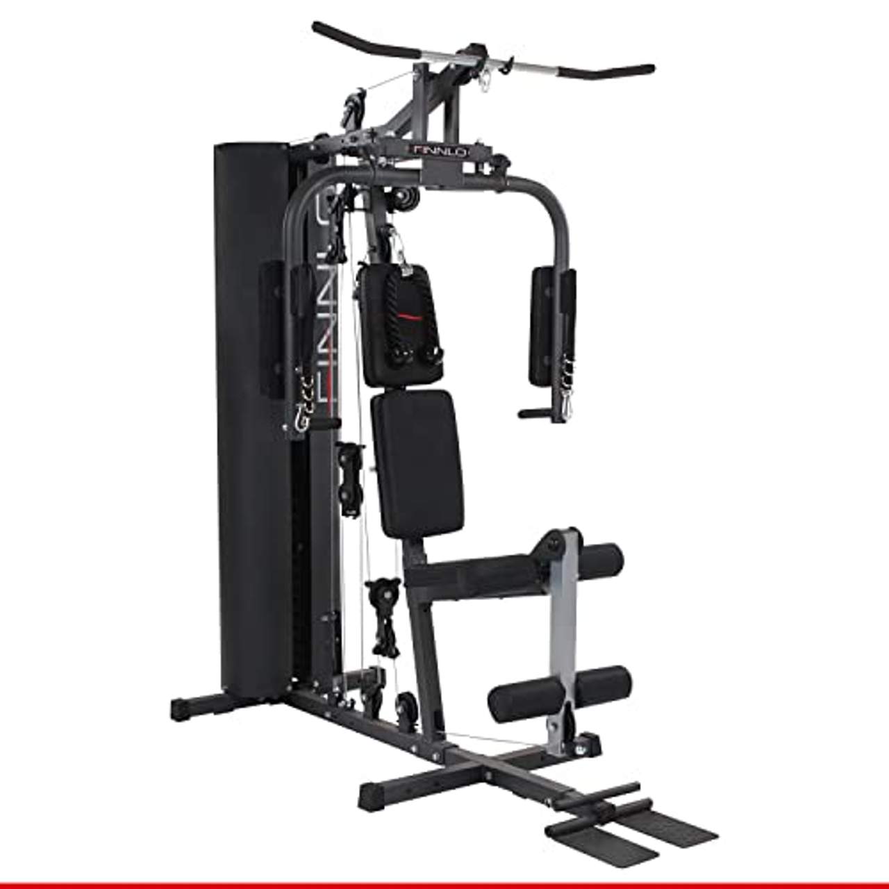 Die Finnlo Kraftstation Autark 600 ermöglicht eine Reihe von Übungen, die alle Muskelgruppen ansprechen. Du kannst Butterfly, Latissimus-Zug, Rudern, Kabelzug-Variationen, Crunches und Beinstrecken machen sowie zahlreiche Optionen, um Arme, Brust, Schultern und Rücken zu trainieren.