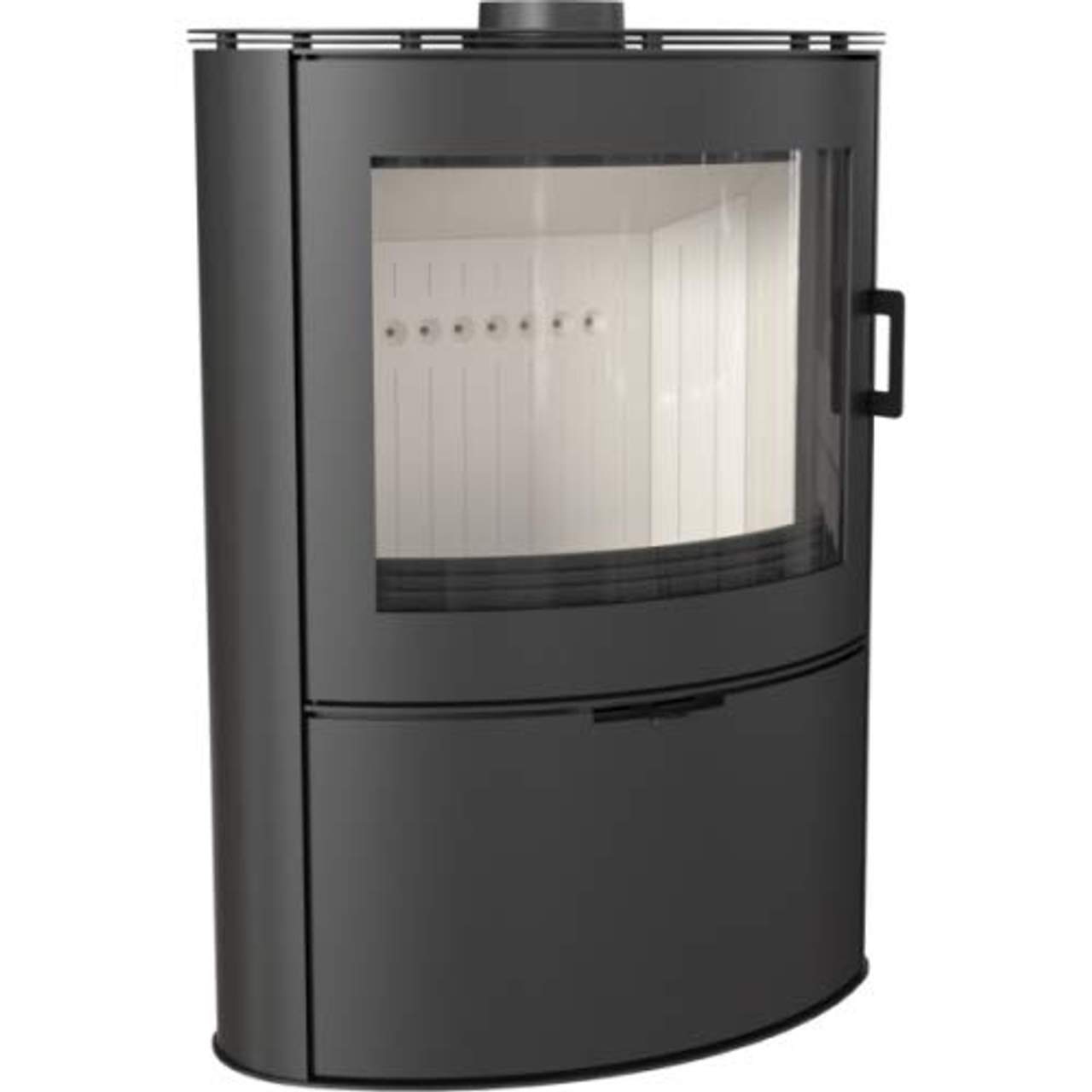 - Attraktives Design: Der Kratki Koza AB S/2 Kaminofen hat ein modernes, halbrundes Glasdesign und ist aus schwarzem Gusseisen und Stahl gefertigt, was ihm ein elegantes und attraktives Aussehen verleiht, das zu jeder Einrichtung passt.