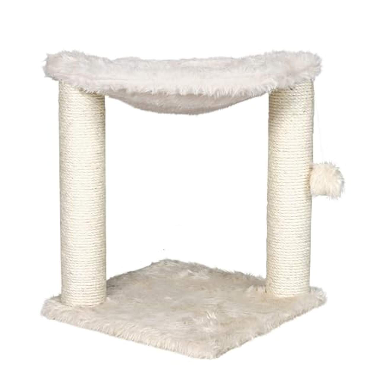 Trixie 44541 Kratzbaum Baza ist ein Kratzbaum mit zwei Kratzbäumen, die mit natürlichem Sisal umwickelt sind. Er wird mit einem Gürtelspielzeug, einer Plüschdecke, mit Natursisal umwickelten Baumstämmen und einer Hängematte auf der Spitze geliefert. Der ultraweiche Boden und die Plattform bieten den Katzen einen bequemen Platz zum Ausruhen nach dem Spielen. Dieses Produkt ist ideal, um Ihr Haustier zu unterhalten und zu verhindern, dass es die Möbel zerkratzt.