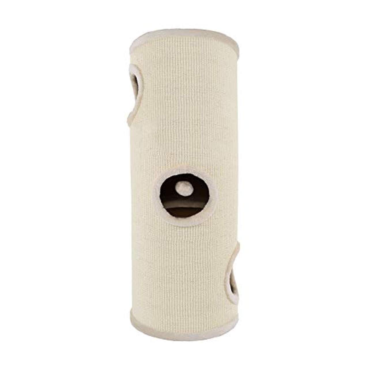 dibea Kratztonne KT00912MULTITALENT: Diese trendige Kratztonne bietet Ihrer Katze eine ideale Mischung aus Spielplatz, Rückzugsort und Krallenpflegeoption OPTIMALE AUSSTATTUNG: Mindestens 2 bis hin zu 3 Öffnungen mit weichem Plüschrand und einem beweglichen Spielball im Inneren animieren zum Klettern, Verstecken und Spielen. Auf der weichen Plattform kann sich Ihre Katze ausruhen und die Umgebung beobachten PRO KRALLENPFLEGE: Dieser Kratzturm ist rundum mit Sisal umwickelt und ermöglicht jederzeit die notwendige Krallenpflege – ein echtes Wetzparadies MODERNES DESIGN: Mit den 3 wählbaren Höhen 50, 70 und 100 cm und den ansehnlichen Farben Beige, Braun und Grau finden Sie in jedem Fall den passenden Kratzbaum für Ihr Tier und Ihr Zuhause DATEN: Hier erhalten Sie die Kratzsäule in der Farbe Beige und der Höhe 100 cm mit 3 Zugangsöffnungen Dieser angesagte Kratzturm ist ein wahres Katzenparadies und eignet sich besonders als Rückzugsmöglichkeit, Spielbeschäftigung und zur optimalen Krallenpflege. Er ist durch