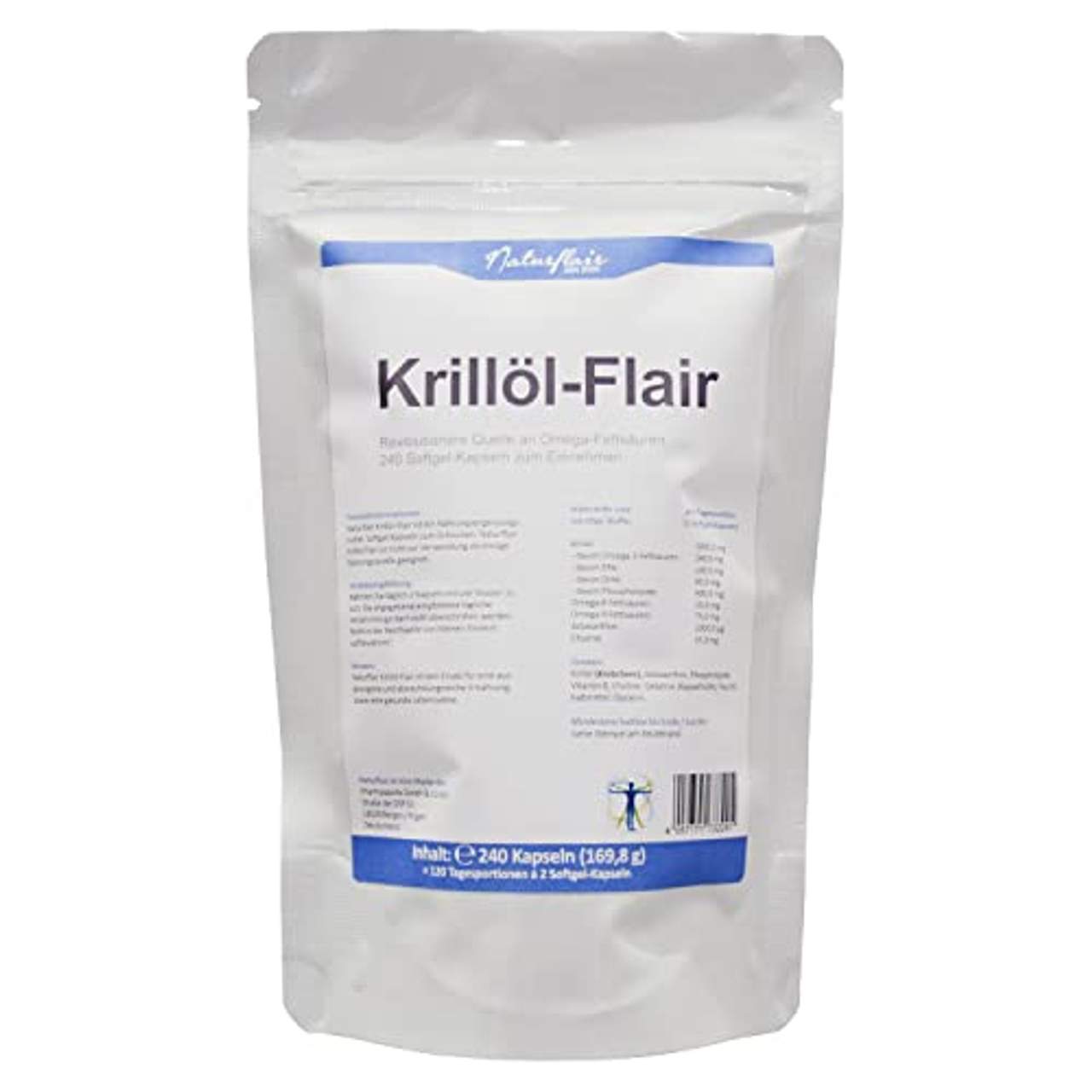 Pro Natural Krill Öl ist ein Produkt der Marke Pro Natural. Es enthält 250 Kapseln Krillöl pro Beutel, was bei der Einnahme von 2 Kapseln täglich 125 Portionen ergibt. Jede Portion von 3 Kapseln enthält 1500 mg Krillöl, mit 600 mg Phospholipiden, 1,5 mg Astaxanthin und 360 mg Omega-3-Fettsäuren (150 mg Epa & 98 mg DHA). Das Krillöl wird aus kleinen Krustentieren in den Gewässern der Antarktis gewonnen und ist weniger belastet als gewöhnliches Fischöl. Die Qualität und Reinheit wird von unabhängigen Labors auf den Gehalt an Epa und Dha sowie auf andere Verunreinigungen wie Schwermetalle und Schimmelpilze geprüft. Es wird in zertifizierten europäischen Werken in Deutschland und den Niederlanden hergestellt. Das Naturflair-Sortiment bietet außerdem eine Zufriedenheitsgarantie für Kunden, die mit ihrem Kauf nicht zufrieden sind.