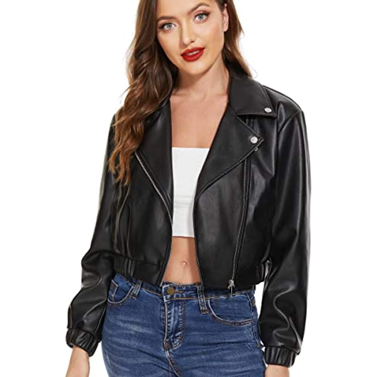 - YYNUDA Damen Lederjacke Kurz Bikerjacke Reverskragen Reißverschlussca. 54 €kostenlose Lieferung