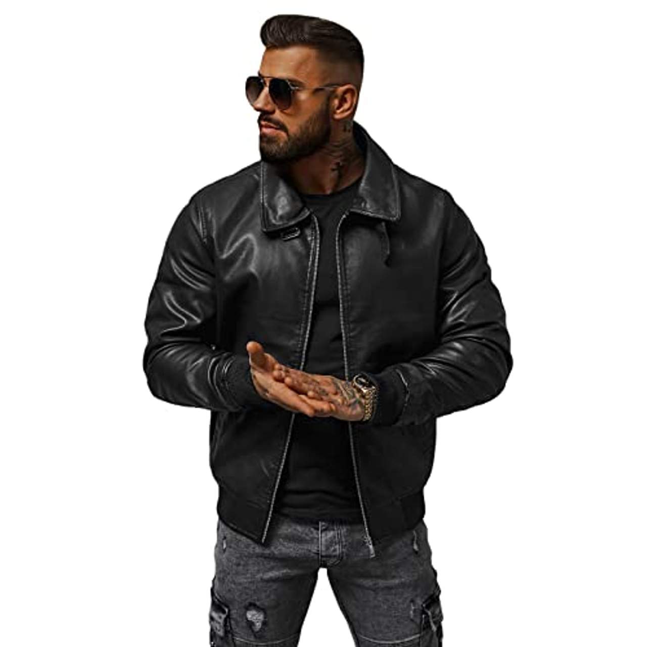 - OZONEE Herren Lederjacke Kunstlederjacke Kunstleder Farbvarianten