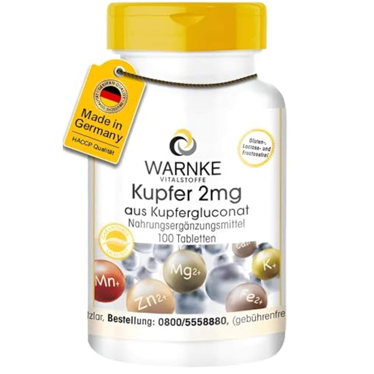 - WARNKE VITALSTOFFE Kupfer-Kapselnca. 12 €0,12 €/StückGratis Premiumversand mit Amazon Prime