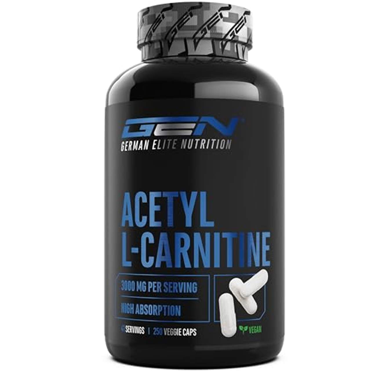 GEN GERMAN ELITE NUTRITION Acetyl L-Carnitin 3000Was ist Acetyl L-Carnitine? Acetyl L-Carnitine ist in seiner Beschaffenheit der Aminosäure L-Carnitine sehr ähnlich und besitzt somit ähnliche Eigenschaften. Eine der Haupteigenschaften von Acetyl L-Carnitine ist es,Nahrung in Energie umzuwandeln um dieser besser zu verstoffwechseln. Ein großer Vorteil von Acetyl L-Carnitine ist die bessere Absorbation gegenüber herkömmlichen L-Carnitine.Das hat zur Folge das Acetyl L-Carnitine schneller und wirkungsvoller von den Zellen aufgenommen und effektiver vom Körper genutzt werden kann.Highlights auf einen Blick: Neue verbesserte Version mit 250 Kapseln pro Dose Pro Tablette 500 mg wertvolles Acetyl L-Carnitine enthalten L-Carnitin in seiner besten Bioverfügbarkeit Perfekte Aminosäure für Sportler, während und nach dem Training Hochdosiert mit 3000 mg pro Tagesportion (6 Kapseln = Tagesportion) Einsatzgebiet: Häufiges Einsatzgebiet Gewichtsmanagement & während der Definitions- phase.Acetyl L-Carnitine ist besonders beliebt bei Sportlern aus dem Bereich Fitness- und Muskeltraining, Radfahren, Bodybuilding und Freelatics beliebt. Eigenschaften: Energiestoffwechsel: Acetyl L-Carnitine spielt eine besondere Rolle beim Energiestoffwechsel Prozess und wird somit häufig als natürliches unterstützung während einer Diät eingesetzt.Leistung & Regeneration: Acetyl L-Carnitine kann die Sauerstoffzufuhr erhöhen und die Stickoxidproduktion optimieren, wodurch das Einsetzen von Müdigkeit im Muskel verzögert werden kann