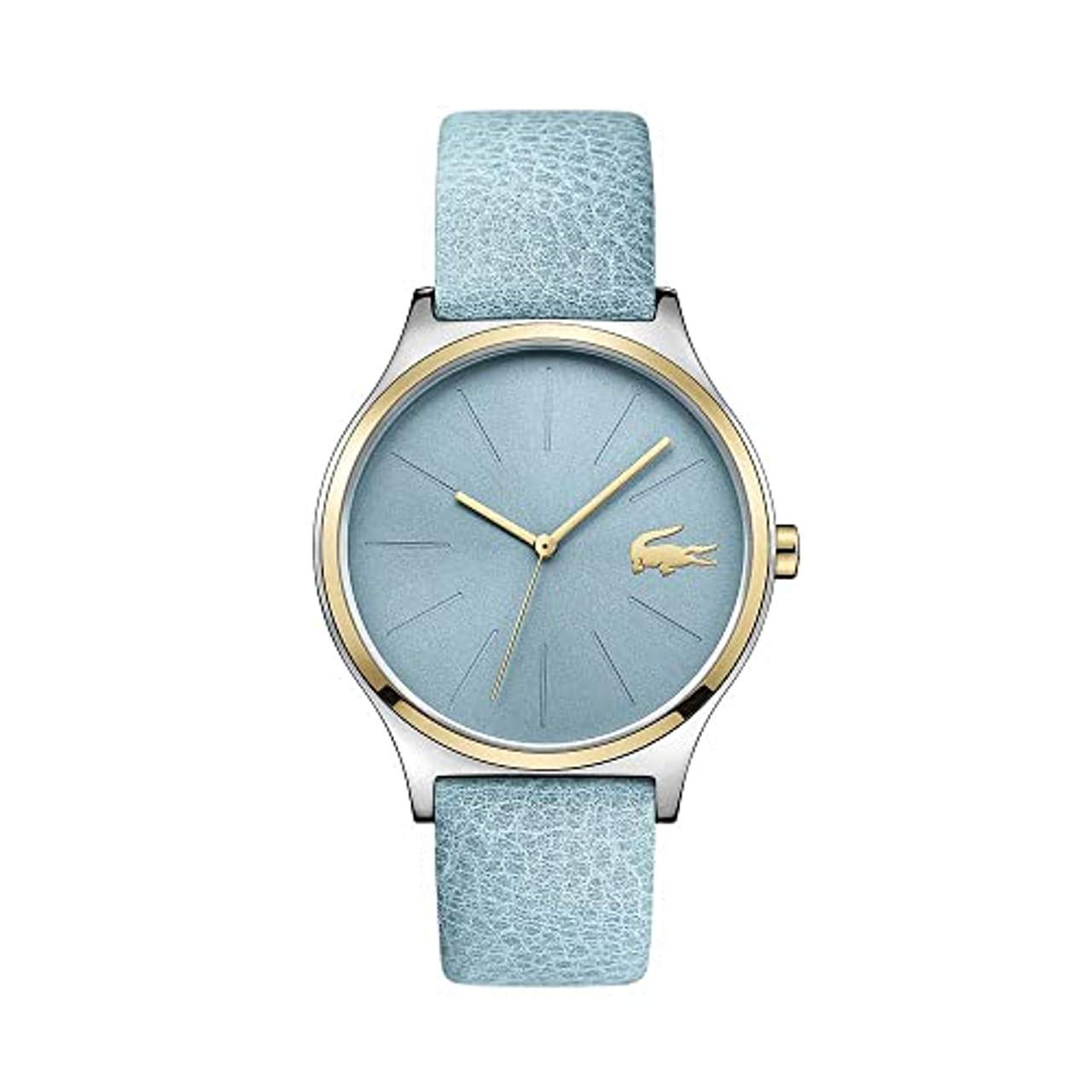 - Stilvoller Look: Die Damenuhr "Nikita" von Lacoste hat ein hellblaues Zifferblatt mit silber- und goldfarbenen Einfassungen, die ihr einen eleganten Look verleihen. Das Lederarmband ist fein strukturiert und erinnert an die Haut des Krokodils, das seit Jahrzehnten das Logo des Labels ist und sich auch auf dem Zifferblatt bei 3 Uhr als goldene Verzierung befindet.