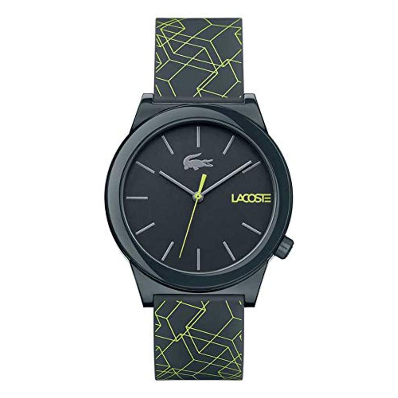 - Stilvoll: Die Uhr hat ein stilvolles graues Armband mit gelbem Aufdruck und dem kultigen Lacoste-Logo bei 12 Uhr.