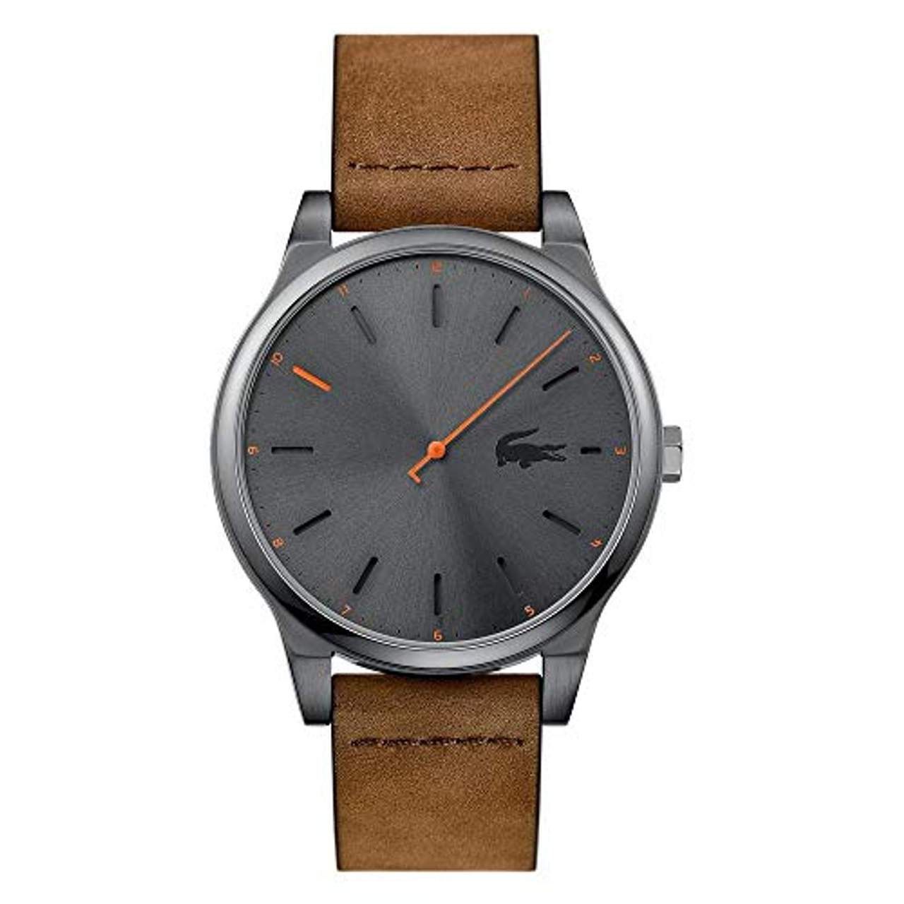 Lacoste Herren Analog Quarz Uhr 2010968Schöne Herrenuhr aus der Serie Kyoto. Sie ist augestattet mit einem robusten Gehäuse aus silberfarbenem Edelstahl sowie einem Armband aus braunem Leder. Das unverwechselbare Lacoste-Krokodil auf dem grauen Zifferblatt aus Messing macht den Look der Uhr komplett.