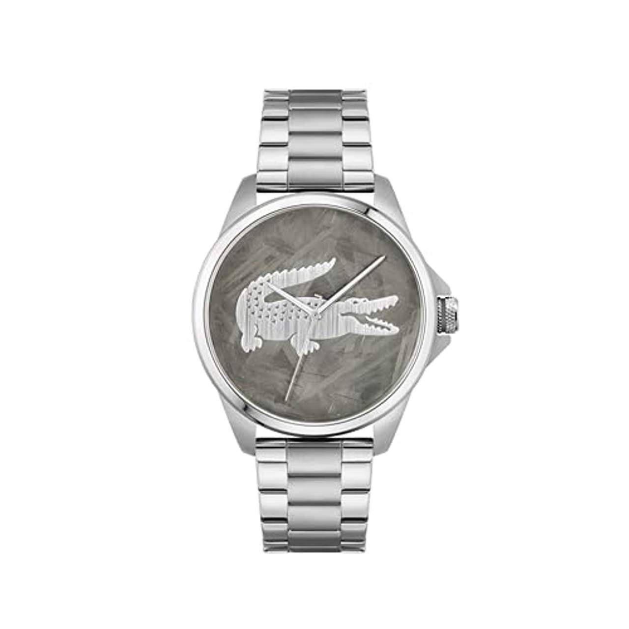 Das Zifferblatt hat eine auffällige graue Textur und trägt in der Mitte das ikonische Lacoste-Krokodil-Logo. Dieses Designelement verweist nicht nur auf das reiche Erbe der Marke, sondern verleiht dieser Uhr auch einen unverwechselbaren Charakter, der sie von anderen unterscheidet.