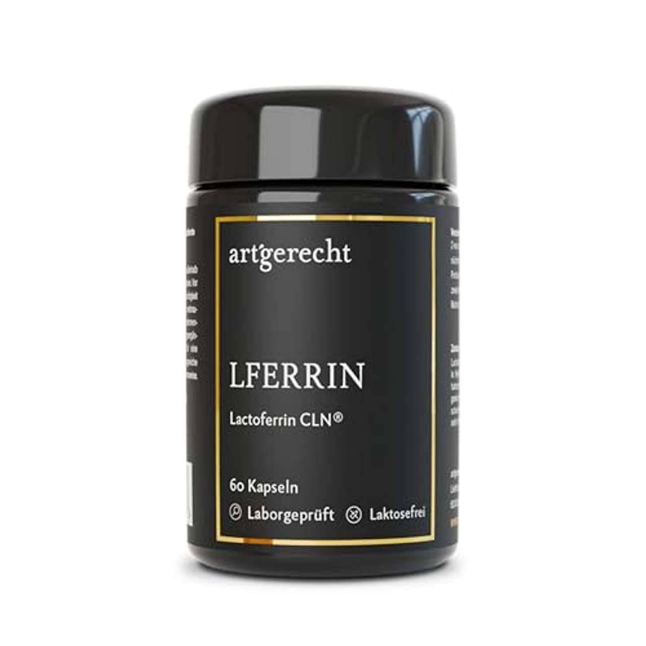 Lactoferrin Kapseln extra rein in Premium QualitätL’FERRIN - Aufgereinigtes Lactoferrin CLN in der magensäurestabilen Kapsel - bis zu 10-mal wirksamer als handelsübliches Lactoferrin. Hoch aufgereinigtes Lactoferrin CLN in Premium Qualität unterstützt das Immunsystem und sorgt für volle Eisenspeicher. Unser moderner Lebensstil kann auf Dauer belastend sein und unser Immunsystem stark beanspruchen.Lactoferrin ist ein körpereigenes Eiweiß und Ur-Substanz unseres Immunsystems. Es ist wichtiger Bestandteil der Muttermilch, um das Neugeborene so lange zu schützen, bis sich sein Immunsystem vollständig entwickelt hat. Zudem gehört Lactoferrin zur Gruppe der sogenannten Transferrine, was bedeutet, dass es Eisen sehr gut umverteilen und transportieren kann.Durch unser schonendes Aufreinigungsverfahren entfernen wir angeheftete Teile von Bakterien (Lipopolysaccharide) und deren Bestandteile sowie Angiogenin und Neu5Gc. So wird die Bioverfügbarkeit und Bioaktivität um ein Vielfaches gegenüber marktüblichem Lactoferrin erhöht. Um zu verhindern, dass Lactoferrin nach der Einnahme in der Magensäure denaturiert wird und dadurch einige seiner Funktionen verliert, verwenden wir eine magensäurestabile Kapsel.Somit wird es erst im Dünndarm aufgenommen, um dort sein volles Spektrum entfalten zu können. Unser Lactoferrin kann bedenkenlos auch während der Schwangerschaft und Stillzeit eingenommen werden. Während der Einnahme von Antibiotika ist die Einnahme von Lactoferrin unbedenklich und empfehlenswert.Lactoferrin stärkt während der Einnahme von Antibiotika das Immunsystem.