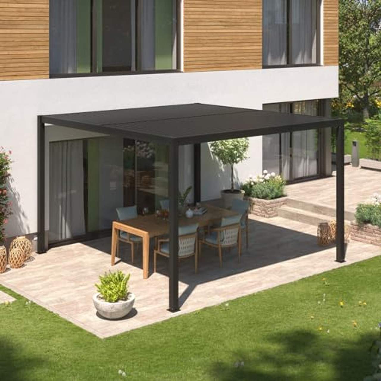 - Robuste Konstruktion: Die empasa Premium Pergola besteht aus einem robusten Aluminiumrahmen in einem eleganten anthrazit/schwarzen Metallic-Finish und garantiert Langlebigkeit und Stabilität gegenüber verschiedenen Umwelteinflüssen. Ihre robuste Konstruktion garantiert Langlebigkeit und reduziert den Bedarf an häufiger Wartung oder Austausch. Diese solide Konstruktion sorgt nicht nur für Sicherheit, sondern trägt auch zu einer anspruchsvollen Ästhetik bei, die zu einer modernen Außeneinrichtung passt.