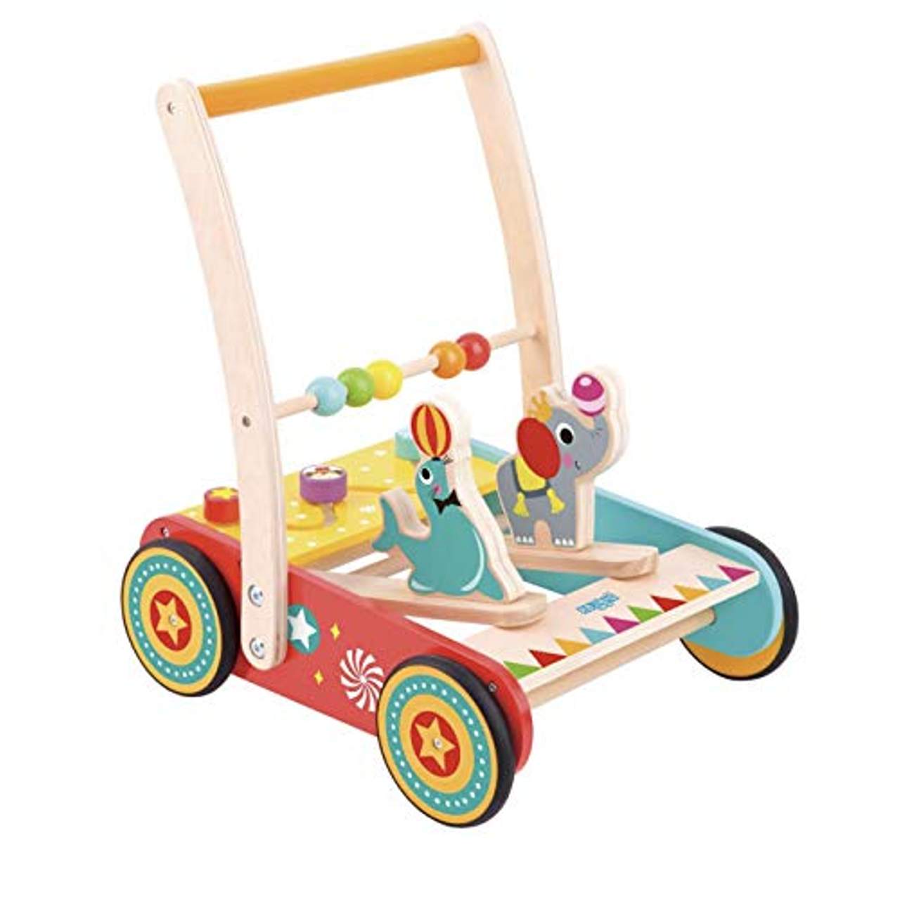 - Stimulierende Spielzeit: Die Lauflernhilfe regt mit ihrem lustigen Zirkusthema zum interaktiven Spielen an und ermöglicht es Kindern, ihre Umgebung auf anregende Weise zu erkunden.