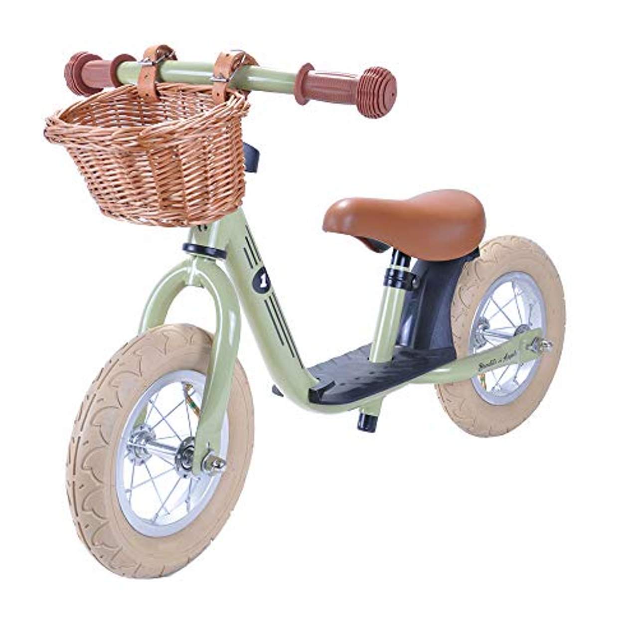 Das Bandits & Angels Laufrad Retro ist ein Retro-Balancebike mit einem Weidenkorb und Luftreifen in Retro-Grün. Es wird von der Marke Bandits & Angels hergestellt und ist in Farben wie Hellbraun, Schwarz und Weiß erhältlich. Der Produkttyp ist ein Fahrrad, mit dem Kinder Gleichgewicht und Koordination lernen können, bevor sie auf ein normales Fahrrad umsteigen. Das Vintage-Design, die robusten Luftreifen und der mitgelieferte Weidenkorb sind die wichtigsten Merkmale dieses Balance-Bikes.