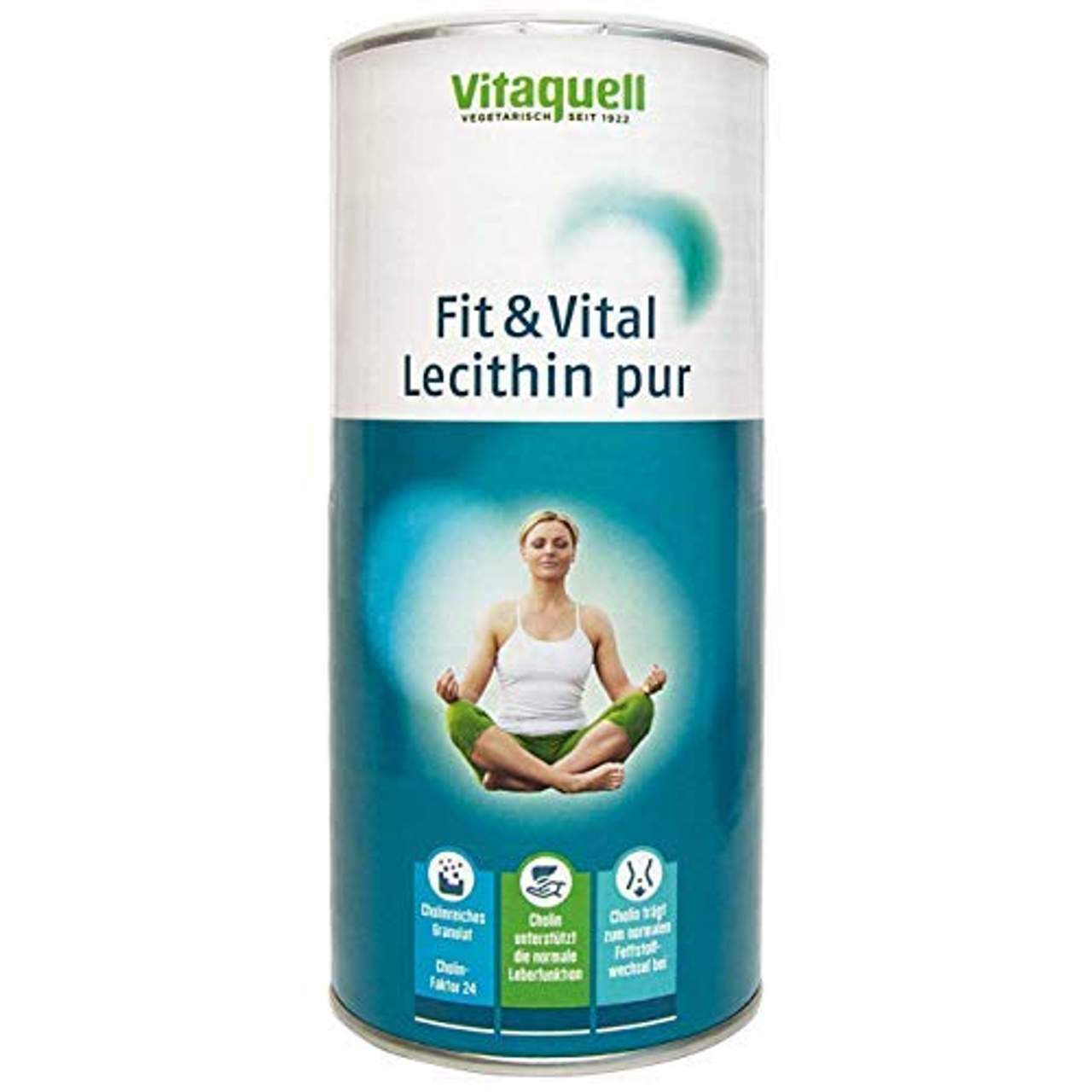Vitaquell Fit & Vital Lecithin pur ist ein Nahrungsergänzungsmittel der Marke Vitaquell. Es enthält 23 % wertvolles Phosphatidylcholin und 0,5 g α-Linolensäure pro empfohlener Tagesdosis (21 g). Es kann zum Backen verwendet, über Müsli und Joghurt gestreut oder pur eingenommen werden. Das in diesem Produkt enthaltene Cholin trägt zur Erhaltung einer normalen Leberfunktion und eines normalen Fettstoffwechsels bei.