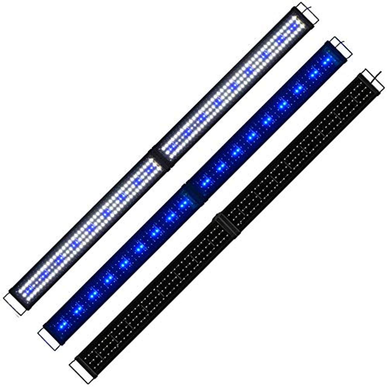 Powerdelux Aquarium LED Beleuchtung ist eine LED-Aquarienbeleuchtung, die zwei Modi hat, Daylight und Moonlight. Der Tageslichtmodus bietet volles LED-Weißlicht sowie blaues Licht, während der Mondlichtmodus nur blaues LED-Licht bietet. Sie ist verstellbar und passt in die meisten Aquarien mit einem verstellbaren Bügel von 180 cm bis 200 cm, wobei jede Seite um bis zu 10 cm verlängert werden kann. Die stabile Lichtquelle fördert das Pflanzenwachstum und ist energieeffizient mit SMD-LED-Technologie, ABS-Kunststoffgehäuse, Oxidationsmaterial und ausgezeichnete Wärmeableitung. Die Installation ist einfach und eignet sich für Süß- oder Meerwasser.