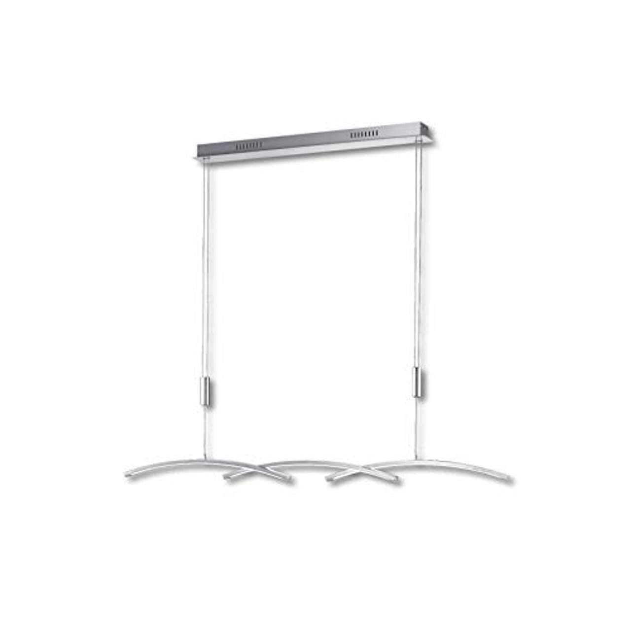 Die Pendelleuchte besticht durch ihr ausgefallenes, schwungvolles aber funktionales Design. Diese Leuchte ist höhenverstellbar bis ca. 150cm. Die Oberflächen sind in Nickel matt mit Chrom abgesetzt, gehalten und wirken hierdurch sehr edel und modern.Diese Hängeleuchte ist mit LED`s ausgestattet, welche sich unter dem Acrylglas befinden, dessen Leistungsaufnahme 36W betragen. Diese Leuchte ist über einen kompatiblen Wanddimmer in der Helligkeit verstellbar