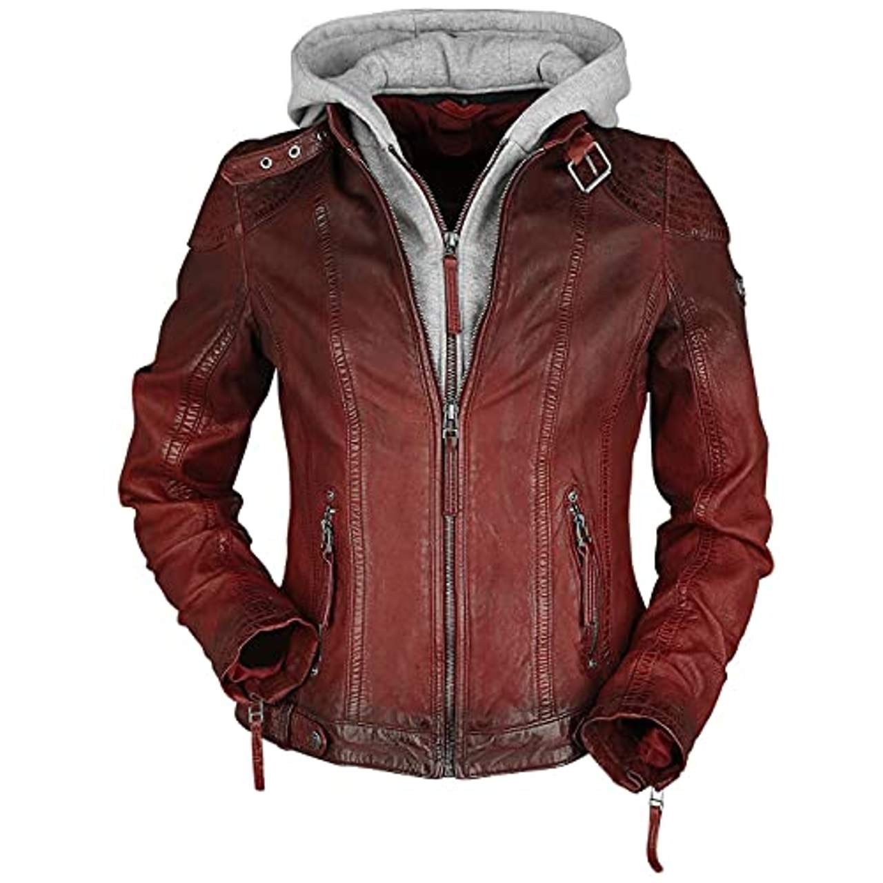 - Vielseitiges Design: Die "Gipsy Cascha Lamov Frauen Lederjacke rot M 100% Leder Basics" zeichnet sich durch ein vielseitiges Design aus, mit dem sie sich nahtlos von legeren zu schicken Styles verwandeln lässt, was sie zu einer unverzichtbaren Ergänzung für jeden Kleiderschrank macht. Mit ihrer abnehmbaren, dicken, grauen Sweat-Kapuze kann diese Lederjacke an verschiedene Wetterbedingungen angepasst werden; sie bietet Wärme und Komfort an windigen Tagen und lässt sich bei sonnigeren Gelegenheiten leicht in eine leichte Bikerjacke verwandeln. Diese Anpassungsfähigkeit bedeutet, dass die Trägerin oder der Träger die Jacke flexibel mit verschiedenen Outfits kombinieren kann, egal ob sie oder er einen lässigen Look bevorzugt oder etwas Anspruchsvolleres.