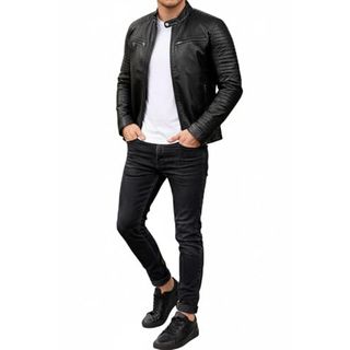 - Leatherick Herren Premium Nappa Schafsleder Cafe Racer Schwarzeca. 120 €kostenlose Lieferung