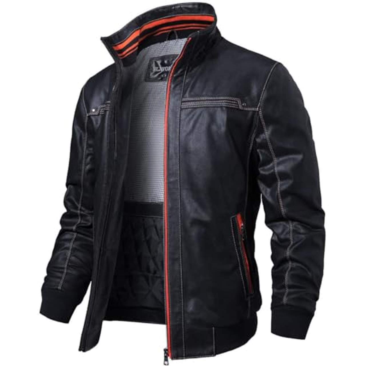 FLAVOR Herren Echtes Leder Lederjacke Stehkragen Jacken Vorteile